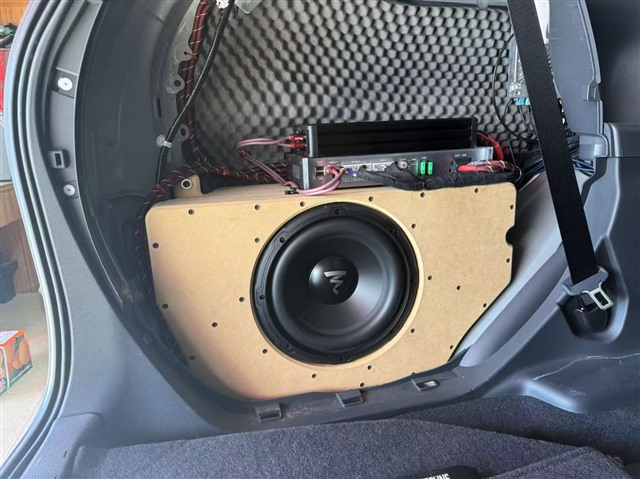 动力方面,诗芬尼BO10 DSP功放不仅为各喇叭提供了稳定的功率输出,其强大的DSP调音功能更能精准调校声场定位与频率响应,让音乐细节清晰可辨。弗莱德FD-1低音功放则专门驱动劲浪SUB 10低音单元,这款低音被精心加装箱体后安装在尾箱侧边,与诗芬尼BO10功放一同被巧妙隐藏,尾箱饰盖还原后,完全不影响储物空间,实现了实用与音质的完美平衡。