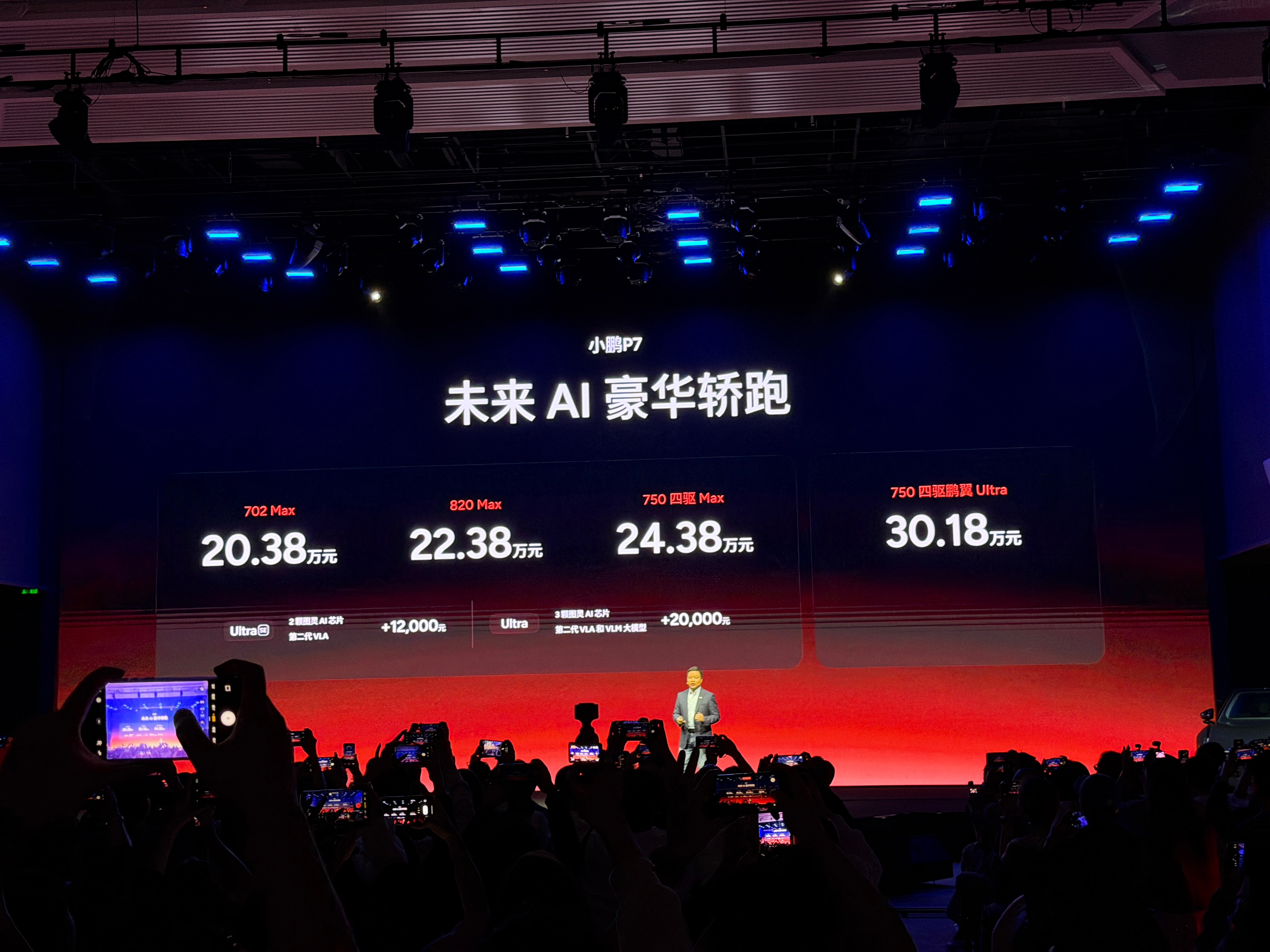 小鹏P7🚗 出来售价啦~详情如下⬇️⬇️⬇️702 Max版 20.38w💰820 Max版 22.38w💰750 四驱 Max版24.38w💰750 四驱鹏翼 Ultra版 30.18w💰而且在Max版基础上,加1w2就能升级成搭载2颗图灵AI芯片+第二代VLA的Ultra SE~加2w可升级为搭载3颗图灵AI芯片+第二代VLA和VLM大模型的Ultra~好奇大家都会选择什么样的配置呢~小鹏P7这次太全面了小鹏P7黑白红新色20.38万起 广州·广州小鹏科技园