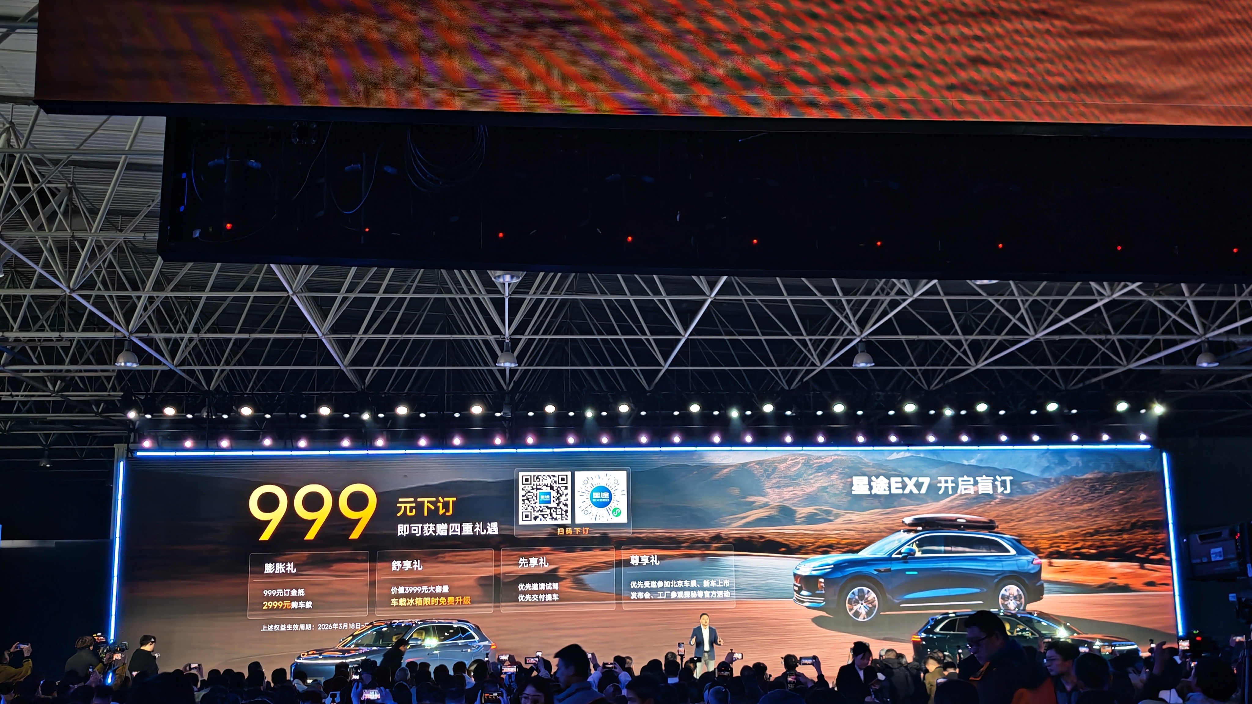 星途EX7开启盲订星途EX7你的第一台中式豪华7系谁说豪华必须“吃土”才能拥有?星途EX7——这位“20万级家用SUV的新王炸”,正式开启盲订。只需999元,你就能把这台拥有百万级体验的“移动豪宅”带回家。