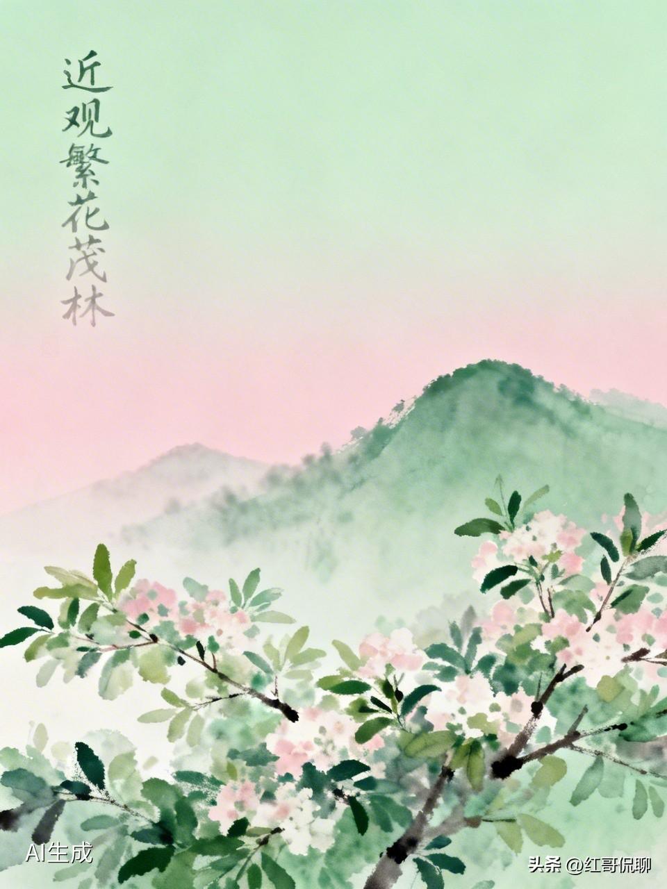 上联:远看青山绿水,下联如何对近观繁花茂林