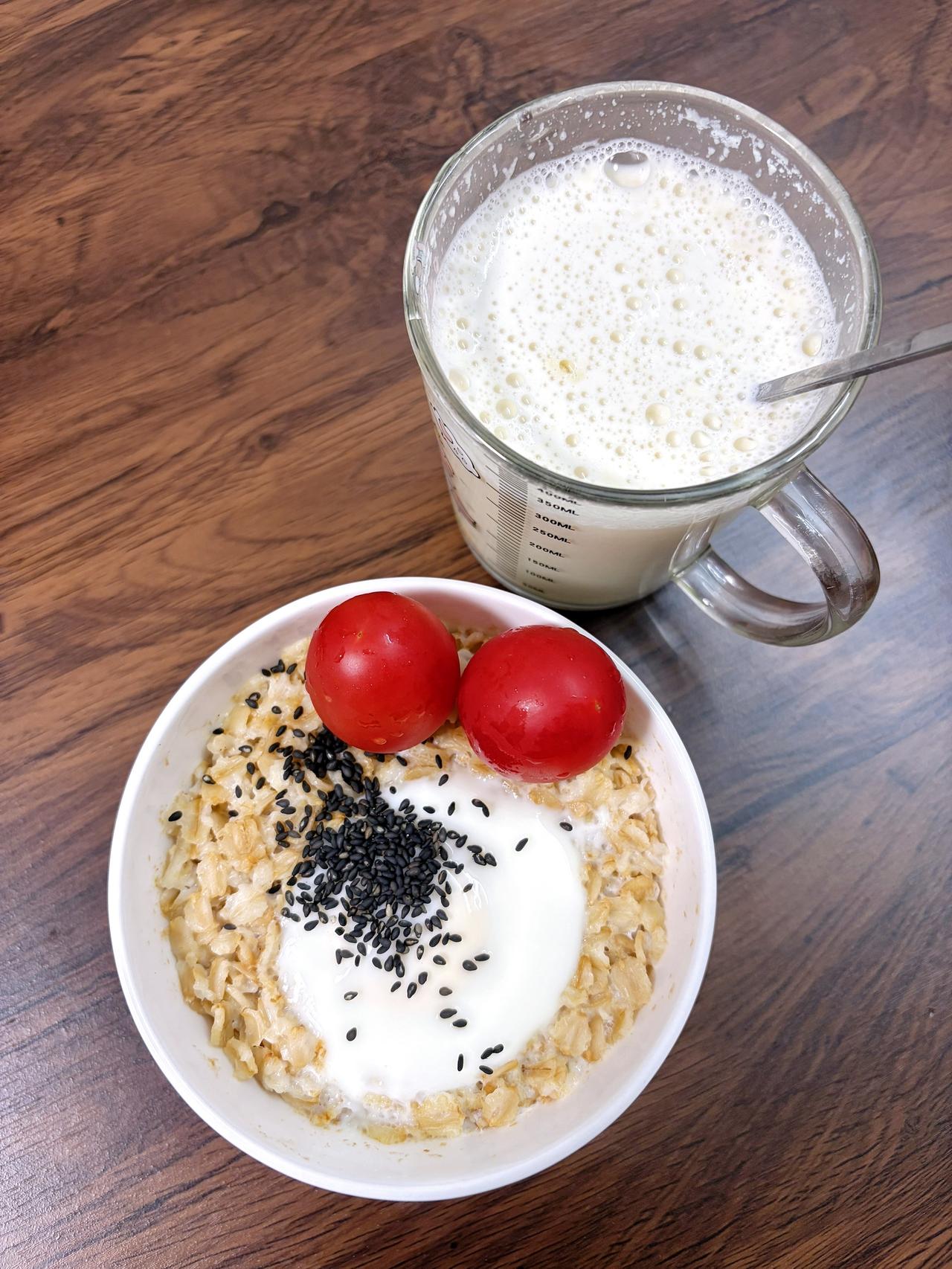 自律减脂健康餐,目标95斤,加油 今日减脂早餐:燕麦鸡蛋+番茄+豆浆 体重管理 自律减脂健康餐 减脂早餐 体重打卡