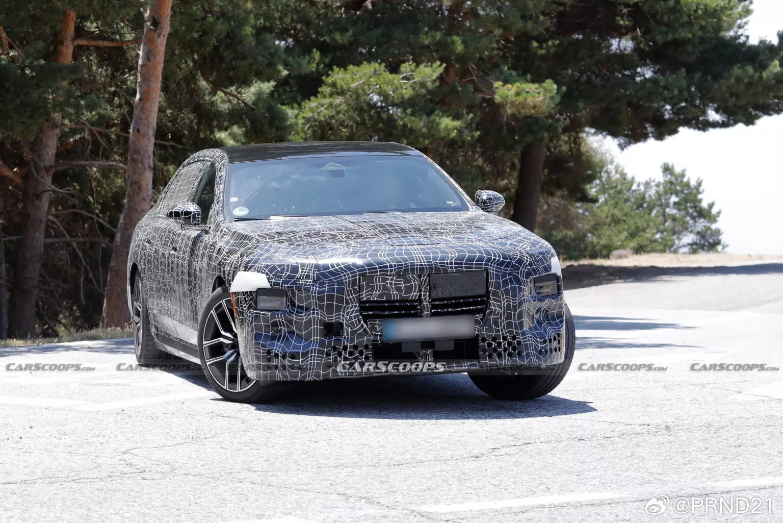 改款宝马7系看样子应该是要弱化之前这双层灯效果了,也许能显瘦……似乎中网造型也更锐利,弱化了之前的“肥腰子”感。