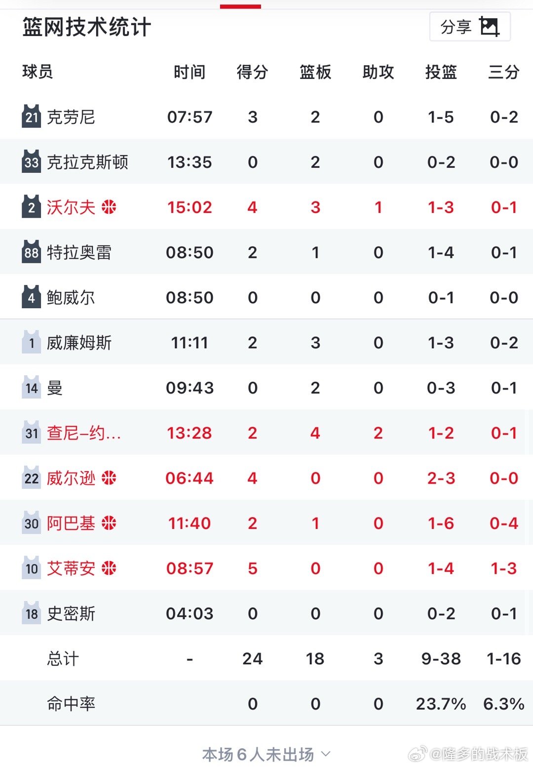 一支NBA球队,半场24分!?😱