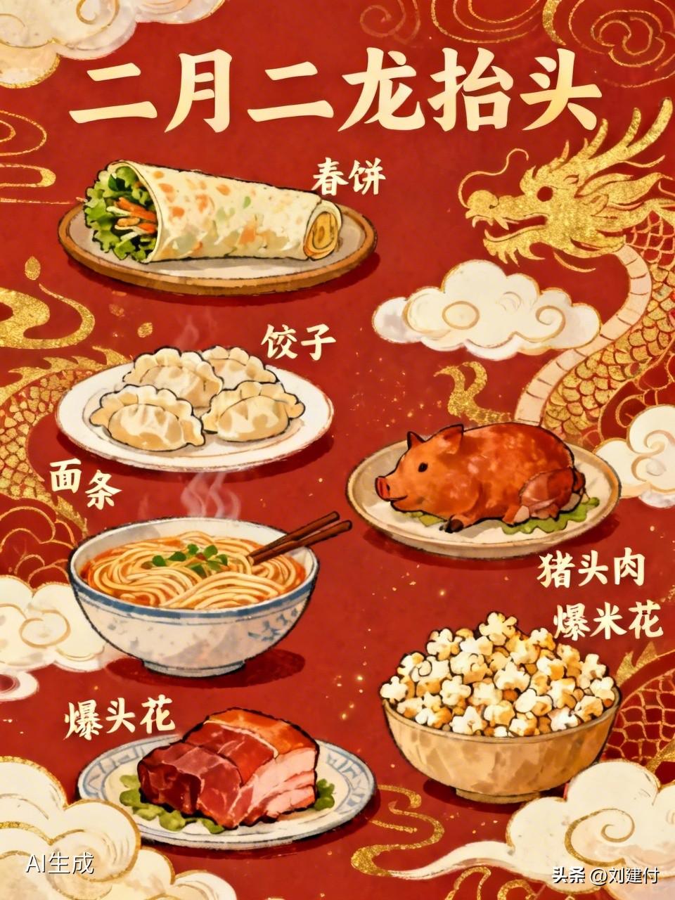 二月二龙抬头你吃过哪些“龙食” 二月二龙抬头,“龙食”吃起来!我吃过的“龙食”可不少。春饼,用薄软饼皮卷上各种配菜,好似龙鳞护身,把福气都卷进肚里,寓意衣食无忧。饺子,北方常见的韭菜猪肉馅饺子被称作龙耳,吃了能听好话、远离烦恼,还能包住福气财气。面条,细长的龙须面,可煮清汤,也可配卤,整根吃寓意顺顺溜溜、福寿绵长。还有猪头肉,啃“龙头”寓意万事不愁,新一年鸿运当头。爆米花象征金豆开花,寓意五谷丰登、日子红火。这些“龙食”不仅美味,还带着美好寓意,感觉二月二吃了它们,新一年都有好兆头!