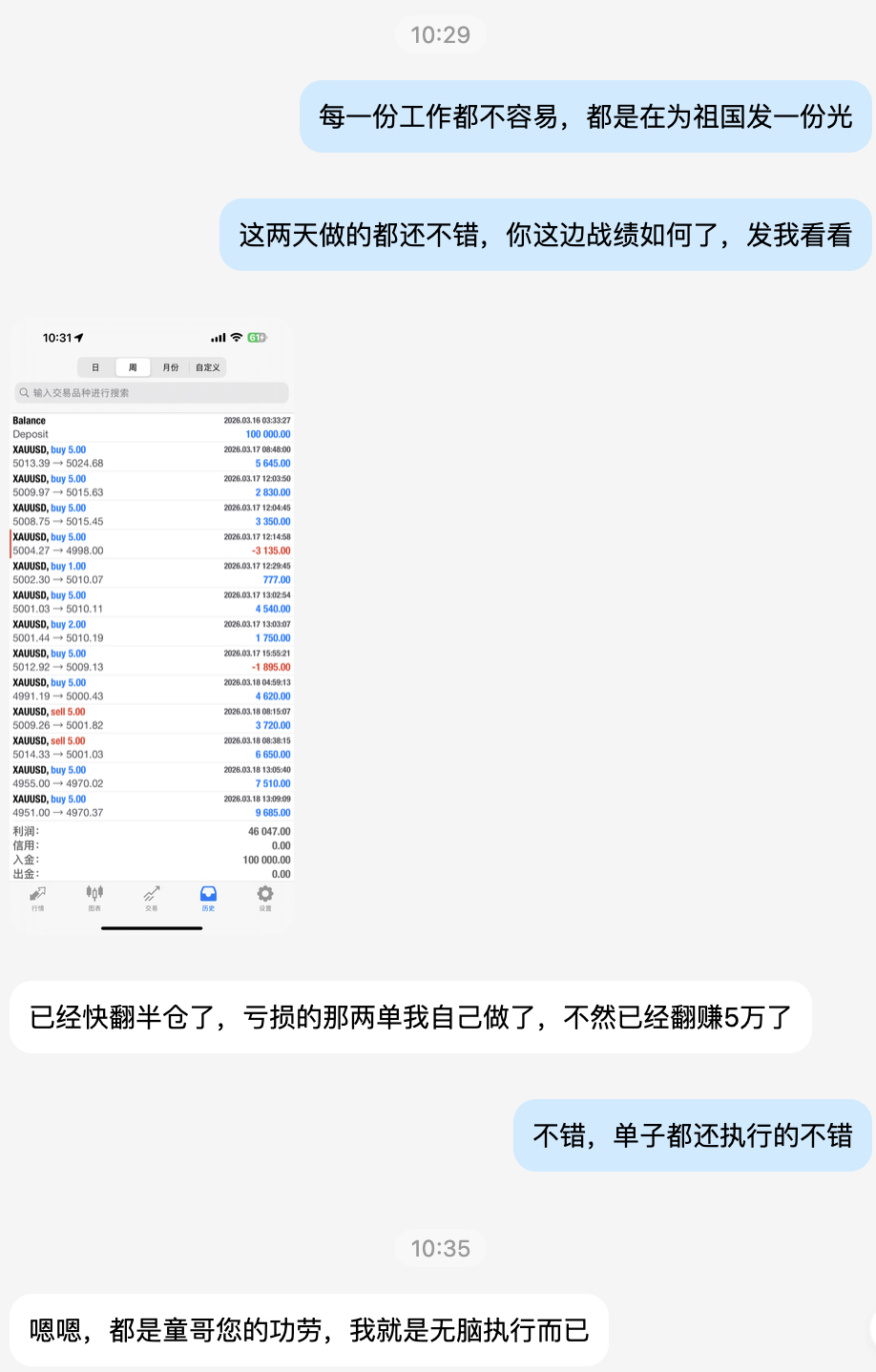 朱兄弟咱已经跟进几天了,每天日常分享操作沟通,包括实盘喊单聊天记录,又或者是做单实仓记录,同时也同步博客策略,一直都是持续稳定的收获,刚刚那波空单又实时跟上,不得不说我的家人们都非常有眼光,知道哪里有肉吃,知道哪里的肉是最香的,微博跟单的你已尝到甜头,童哥实盘更是宝藏之地, 跟上实盘布局你将会了解什么叫远超市场高平均水平!其他常提的风控,稳健操作以及微博分享的问题我就不多说了,童哥从不跟大家玩虚的,只看实实在在的收益,最后,看图慢慢理解吧,你非常值得拥有!