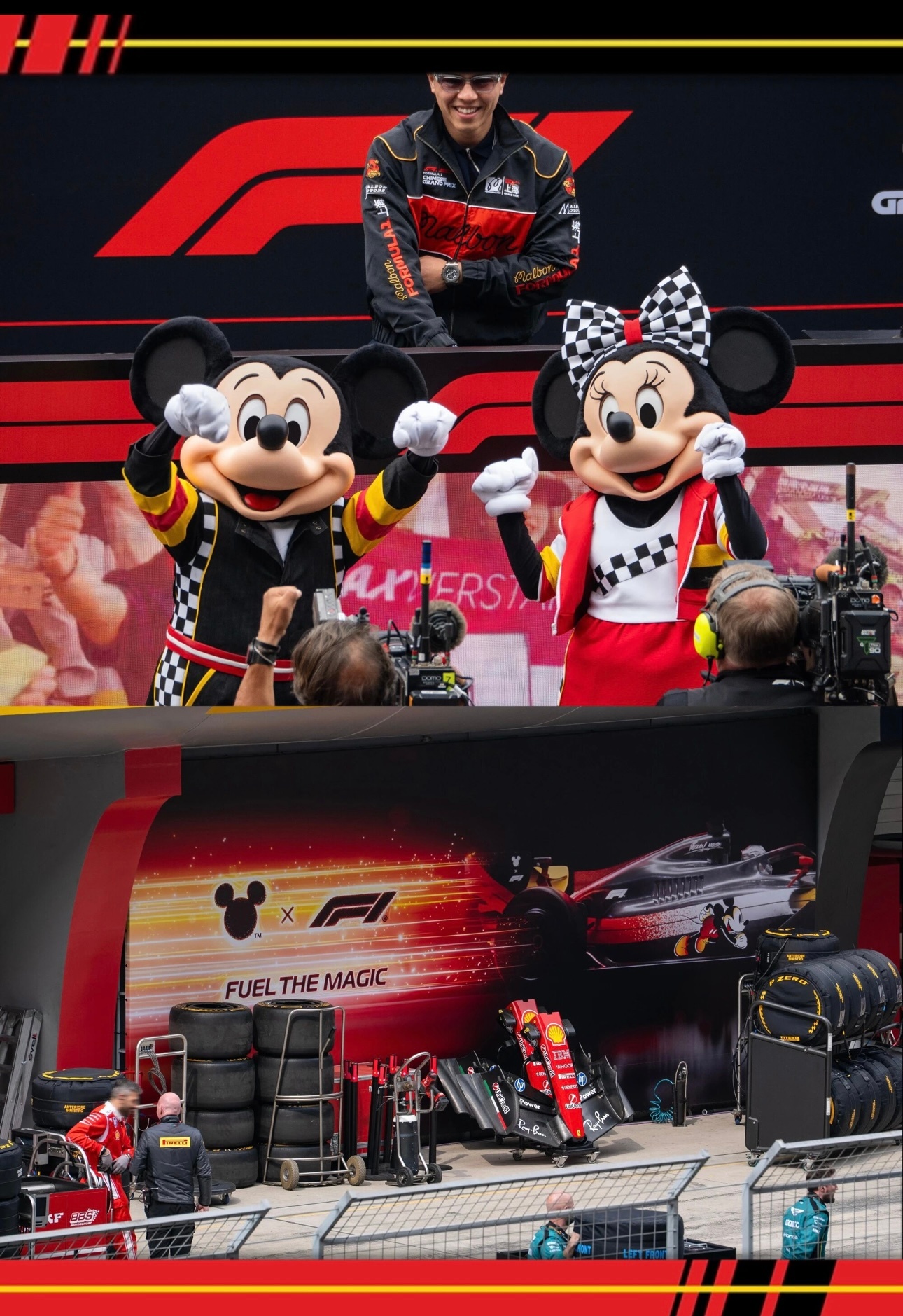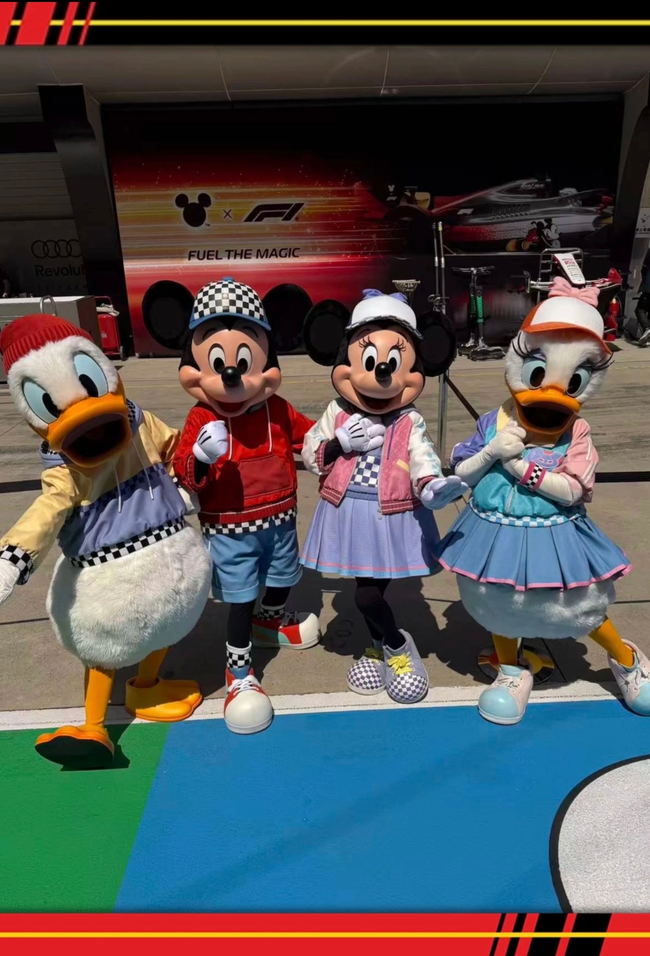 不知不觉中,F1围场里面的迪士尼元素越来越多了打卡了围场里面的迪士尼涂装F1赛车,还亲眼见到了米奇和米妮入场