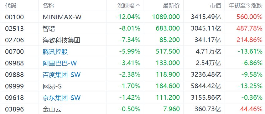 港股OpenClaw概念股集体回落,Minimax大跌12%