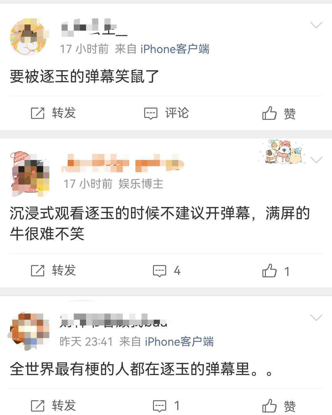 没有弹幕我简直是在乱看 单更的日子,我这条追剧的命,是《逐玉》的弹幕给的!真的笑不活了,感觉全世界最有梗的段子手都潜伏在鹅家的弹幕里!“满屏都是征玉的兵,你们别吵,我替你们上战场!”这种神评论真的让我拍桌狂笑。现在看剧,正片是主菜,弹幕是我的电子榨菜,没有这铺天盖地的“嘴替”和“梗王”,追剧乐趣直接少一半!谢谢鹅,让我在等更的漫漫长夜里,还能收获不一样的快乐,亖守鹅家等更新!