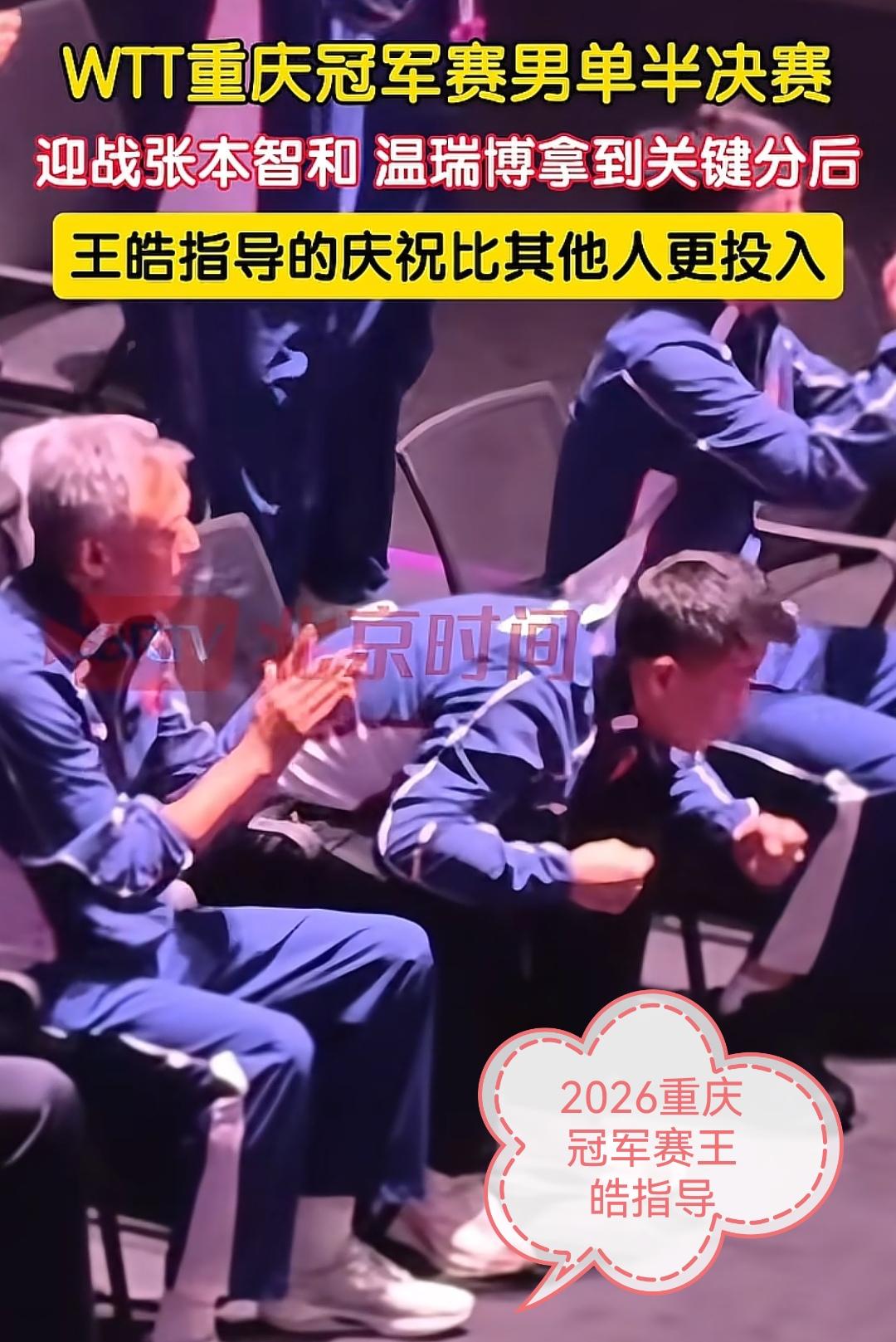 国乒的传承,原来就连赢球的庆祝方式也有传承。 2025年亚锦赛男团决赛,国乒男队在大比分0:2落后的情况下逆转3:2拿下最终的胜利,依然记得梁靖崑飞奔向王皓指导的一幕,还有坐在替补位林诗栋那特别的庆祝方式。 2026重庆冠军赛,男单半决赛温瑞博对阵张本智和的比赛,当国乒小将温瑞博拿下关键分的时候,坐在观赛席的王皓指导的庆祝方式跟林诗栋2025年亚锦赛的庆祝方式一模一样,原来小将林诗栋的庆祝来自国乒男队主教练王皓指导的版本。 无论何时回看这两场比赛依然十分感动,关注乒乓球比赛,非常理解运动员的不易,我们国乒团队所有优秀的传统都会传承一代又一代,国乒团队加油!