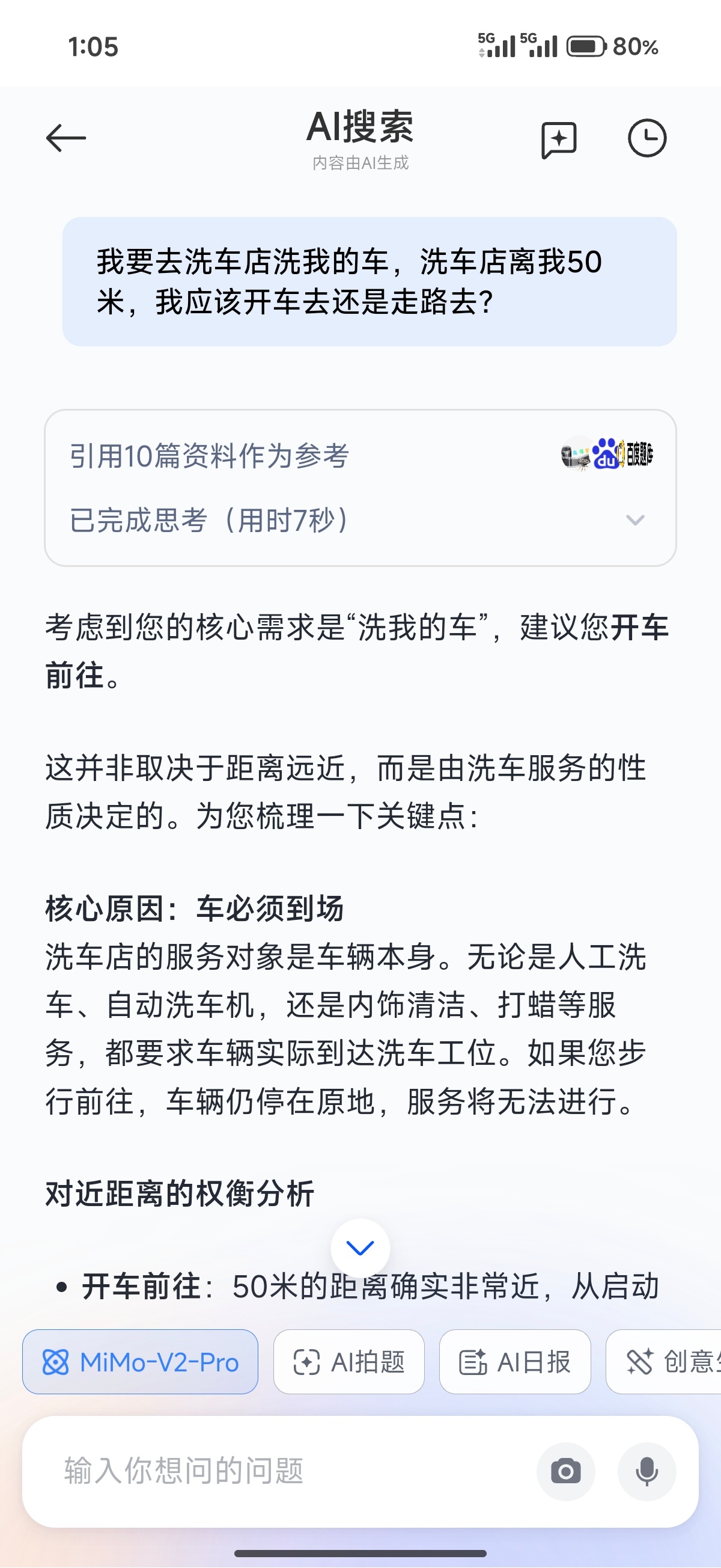 小米澎湃OS3 小米浏览器已接入Mimo-V2-Pro,正确回答“50米洗车AI