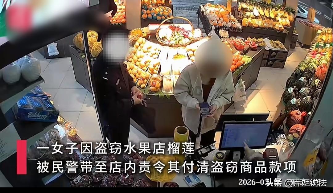 湖北武汉,一女子因为偷了盒榴莲,罚了5天拘留。店家表示,她不是一次、两次了,太多次了!监控显示,女子去年偷完车厘子,今年又来偷榴莲,店家忍无可忍,报警了。结果女子贪小便宜吃大亏,不仅留了案底,还要赔钱,赔面子…… 民警接到一报警电话,该人自称是水果店店员,语气特别无奈,她表示有人在店里偷水果,虽然没多少东西,但是偷了好几次了。 据报案的人讲述,她刚开始也没有发现,只是在对账的时候,有些水果的账目对不上。 她以为是自己进货的时候,数目没记清,也没有太上心。 但是,后来她发现经常会有一些水果丢失,她觉得事情可能没那么简单。 后来她开始留心观察这些来买水果的顾客,顾客看看是不是有人手脚不干净。 没过几天,她就发现一个二十来岁的年轻小姑娘,经常会在店里店员结账或者摆货的时候偷水果,原来问题就出在这个小姑娘的身上。 本来这个报案的人不想追究,她觉得也没多少东西。如果追究起来的话,这个小姑娘脸上挂不住。 也许这小姑娘只是一时兴起或者嘴馋啥的,手上正好没带那么多钱,兴许以后就不偷了。 但这小姑娘并没有就此收手,尝到甜头的她反而变本加厉,经常来这家偷水果。 最后,这个水果店的工作人员实在受不了了,就报警了。 从店里视频监控中可以看到,该女子先把香蕉放到那收银台上,后来又把一盒榴莲果肉给藏身上了。 而且从去年11月份的监控里可以发现,女子还曾偷偷把一盒车厘子给藏包里顺走了。 好家伙,这是把人家的店当成自己家的了,偷完车厘子,偷榴莲,她以为人家店里人不知道呢。 其实人家早就发现了,只是不想追究而已。 但是,万万没想到,店员的一片善意反而给了这个女子作案的空间,让她越来越肆无忌惮。 民警接到报警电话以后,当天晚上就将该女子抓捕归案了。 被抓了以后,该女子对自己的罪行供认不讳,她老实交代,她看这家店的水果特别新鲜,看店的人也少,就起了贪念。 第一次得手以后,她发现自己一点事没有。就觉得这家店管得松,估计没有安装监控。 她的胆子就大了,看到喜欢的水果就拿,已经好几回了。 那么,这个女子会受到怎样的法律制裁呢?她会为自己的行为付出怎样的代价呢? 《治安管理处罚法》第四十九条明确规定,盗窃、诈骗、哄抢、抢夺、敲诈勒索或者故意损毁公私财物的,处五日以上十日以下拘留,可以并处五百元以下罚款;情节较重的,处十日以上十五日以下拘留,可以并处一千元以下罚款。 从上法律内容中,我们可以了解到该女子已经犯了偷窃罪,会面临行拘留、罚款等惩罚。 据了解,该女子被抓了以后,判了5天拘留,她还必须偷的水果钱给人家店里还回去。 女子因为偷点水果,喜提5天拘留,这种行为看似特别愚蠢,其实在生活中并不少见。 前阵子还有女子在集贸市场水果摊偷了4个西瓜、两个哈密瓜被抓了,广东的一男子还借“偷青”的名义偷人家的粑粑柑…… 面对这类事情,有些人认为,他们只是顺手拿点水果,也没有多少钱,并不能算是严格意义上的偷窃。顶多算是爱占小便宜,道德上不讲究。 店家发现以后,口头上教育一下,让他们把该付的钱付了就可以了,实在没必要因为这点事儿就大张旗鼓地把人家抓起来,有些大惊小怪了。 但在法律层面来讲,这种顺手牵羊的行为并不是小事。他们在伸手的那一刻,就已经踩到法律的红线了。 因为这些水果并不是没有主人,它们属于合法的私人财物品,他们不经允许,偷摸拿走,已经侵犯了别人的财产权。 关于这点,《民法典》第3条:民事主体的人身权利、财产权利以及其他合法权益受法律保护,任何组织或者个人不得侵犯。 所以勿以恶小而为之,及时管住自己的贪念,养成良好的生活习惯,避免道德滑坡的同时,还能牢守法律的底线。