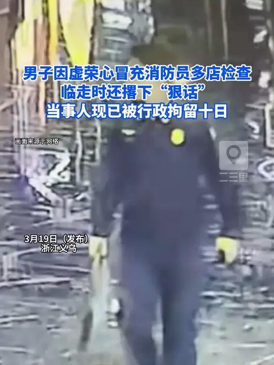 为了面子触犯法律实在不值!浙江义乌一名男子凭借虚假身份上演荒唐闹剧最终付出惨痛代价。常言道虚荣之心害人不浅,刻意伪装的光环终究会在现实面前彻底破碎。 (个人观点仅供参考,无任何不良引导) 浙江义乌的男子王某在2026年3月11日至13日期间生出歪念。他从网络渠道购买仿制的消防服饰,随意佩戴各类标识配件,对外宣称自己是王参谋。他接连前往北苑与稠江街道的四家经营性店铺,以消防检查的名义四处走动。他只会简单查看灭火器材,随意提问基础消防知识。核心检查区域全被他刻意忽略,他还摆出严厉姿态恐吓店内工作人员。虚假的权威感让他的内心得到极大满足。 店铺内的工作人员起初保持敬畏之心全力配合各项流程。细心的经营者很快察觉异样。专业消防检查有着严谨步骤与完备证件。眼前的检查人员言行怪异流程混乱,丝毫没有正规工作人员的专业素养。心存怀疑的店家第一时间与消防单位取得联系。官方明确回应无相关检查计划,这场拙劣的表演当场被拆穿。相关信息快速报送至公安部门,调查工作迅速展开。王某面对确凿证据无法辩驳,如实交代全部违法行为。 2026年3月17日,义乌公安部门对王某作出行政拘留十日的处罚。涉案的全部仿制制服被当场收缴。王某没有产生经济诈骗行为。他的行为破坏社会正常管理秩序,玷污消防救援队伍的神圣形象,触碰国家法律不可逾越的红线。 伪装身份换取虚荣终究是自欺欺人。敬畏法律尊重职业是做人的基本准则。踏实做事本分做人,方能行稳致远。