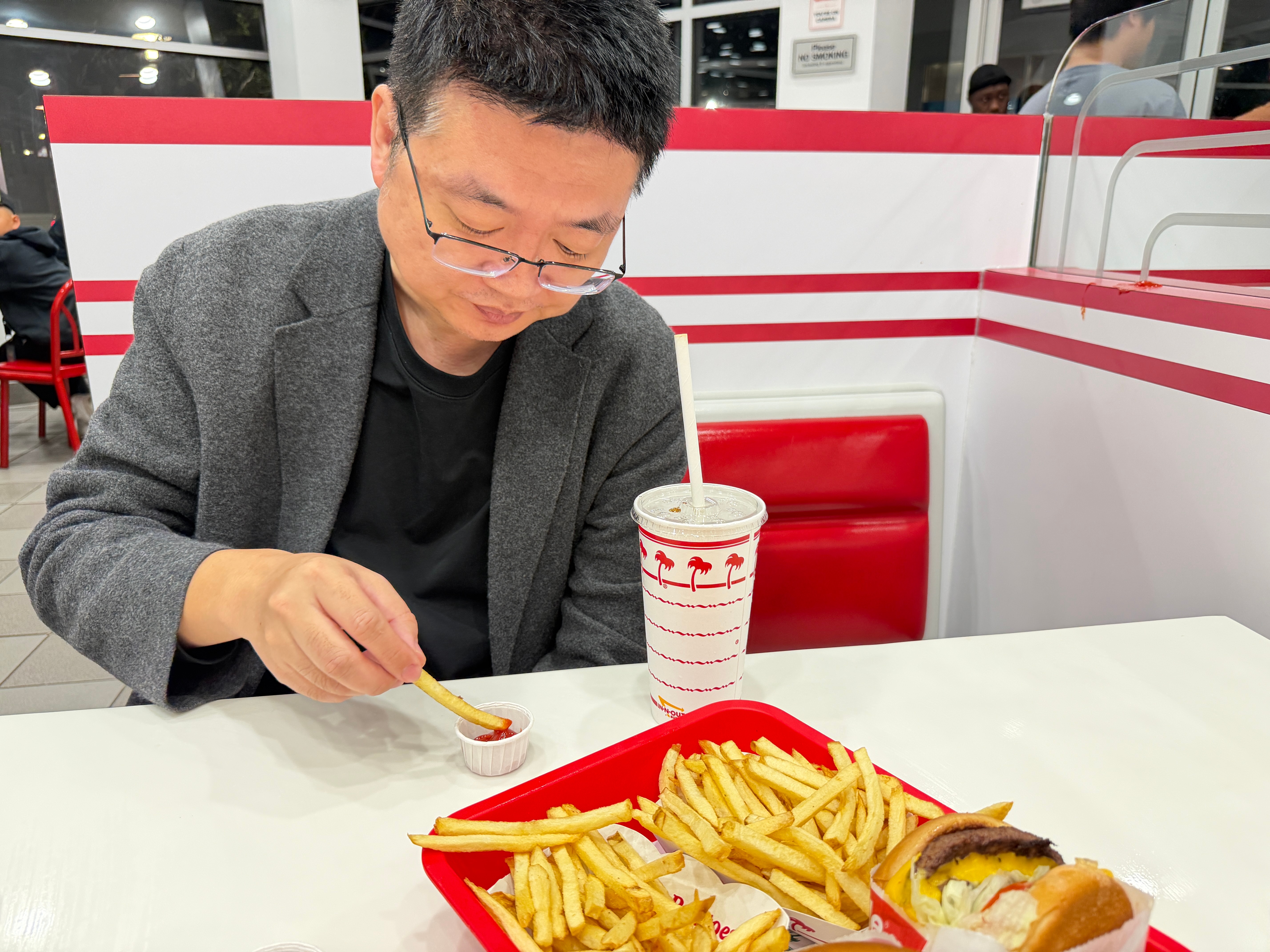 因为我们刚在便利店买了4瓶1.5L矿泉水花了21刀,竟然觉得29美金的汉堡套餐挺便宜