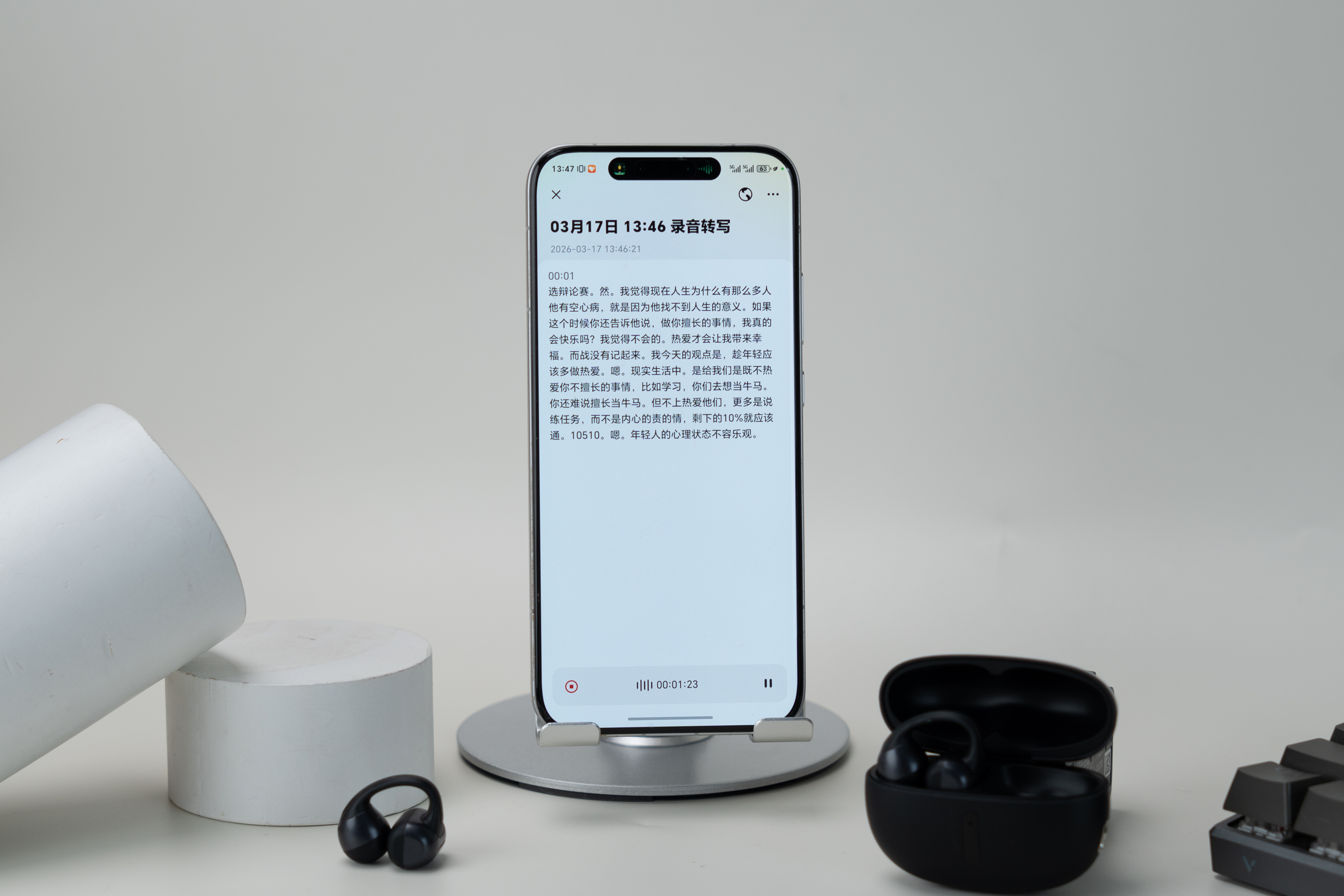 哈趣Ace1耳夹式耳机,用了一段时间给大伙唠唠真实感受我本身就不太喜欢入耳式,塞久了耳朵又闷又胀,这款耳机就特别适合我……它用的是云朵亲肤技术,单耳佩戴很轻,我自己戴久了也完全没压迫感。说到运动不脱落,它的稳固三角结构搭配人体工学设计,做得是真的不错~我在室外用下来,定向传音这块能兼顾私享和抗干扰,体验感很到位。音质上它搭载了11mm超大动圈,还搭配了专业声学调校和Hi-Clear超解析算法,这么多黑科技加持,确实给我带来了很棒的听觉感受。它的三频很均衡,我对音质不算太讲究,但能听出细节很足,还能AI定制专属听感。AI-ENC通话降噪在嘈杂环境里沟通也特别清晰,蓝牙6.0低延迟适配游戏、追剧都合适,对我这种i人来说真的是大福音了音质和外观本来就是选耳机的重要指标…但我觉得哈趣Ace1的核心亮点,还是AI多场景使用功能,像翻译、会议纪要这些办公功能,我这个打工人用了直接疯狂爱上。还能搭配它的专属APP,实现智能交互,自定义操作和音效都可以,基本上一机就能覆盖学习、通勤、办公、轻运动等所有日常场景…用着是真的挺顺手的聊到这,我自己用下来是真的挺惊喜的,要知道它售价还不到300块,但整体体验来看,它是真的以高性价比打破了价位壁垒,把音质、佩戴舒适度、实用功能和场景适配性完美融合在了一起~哈趣Ace1