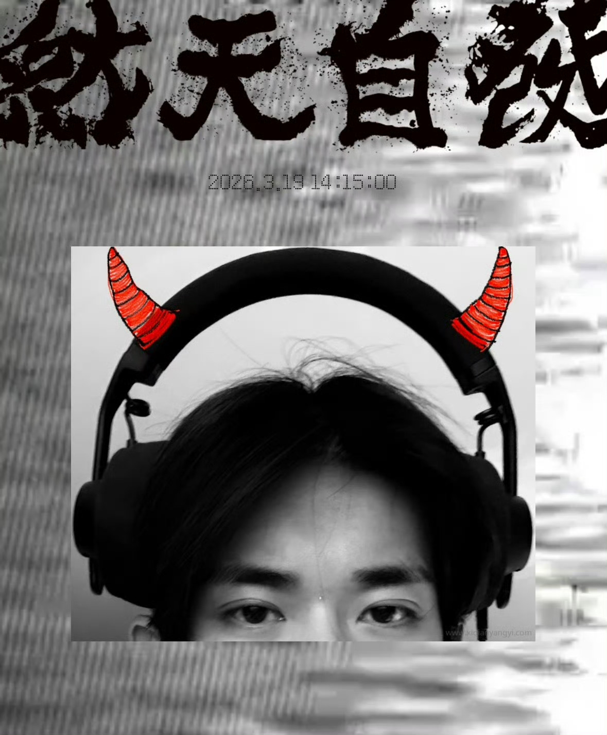 易烊千玺给自己画了恶魔角和眉心痣 易烊千玺小网站更新,戴耳机自拍还给自己画了恶魔角和眉心痣是在录歌报备了吧易烊千玺录歌报备