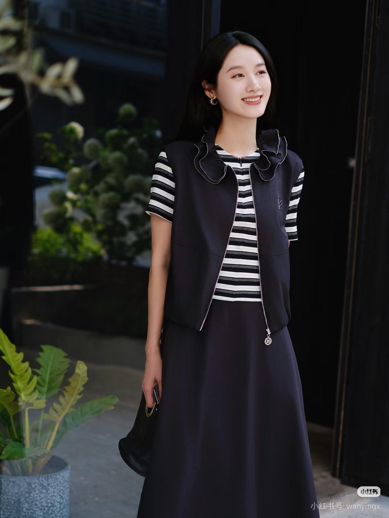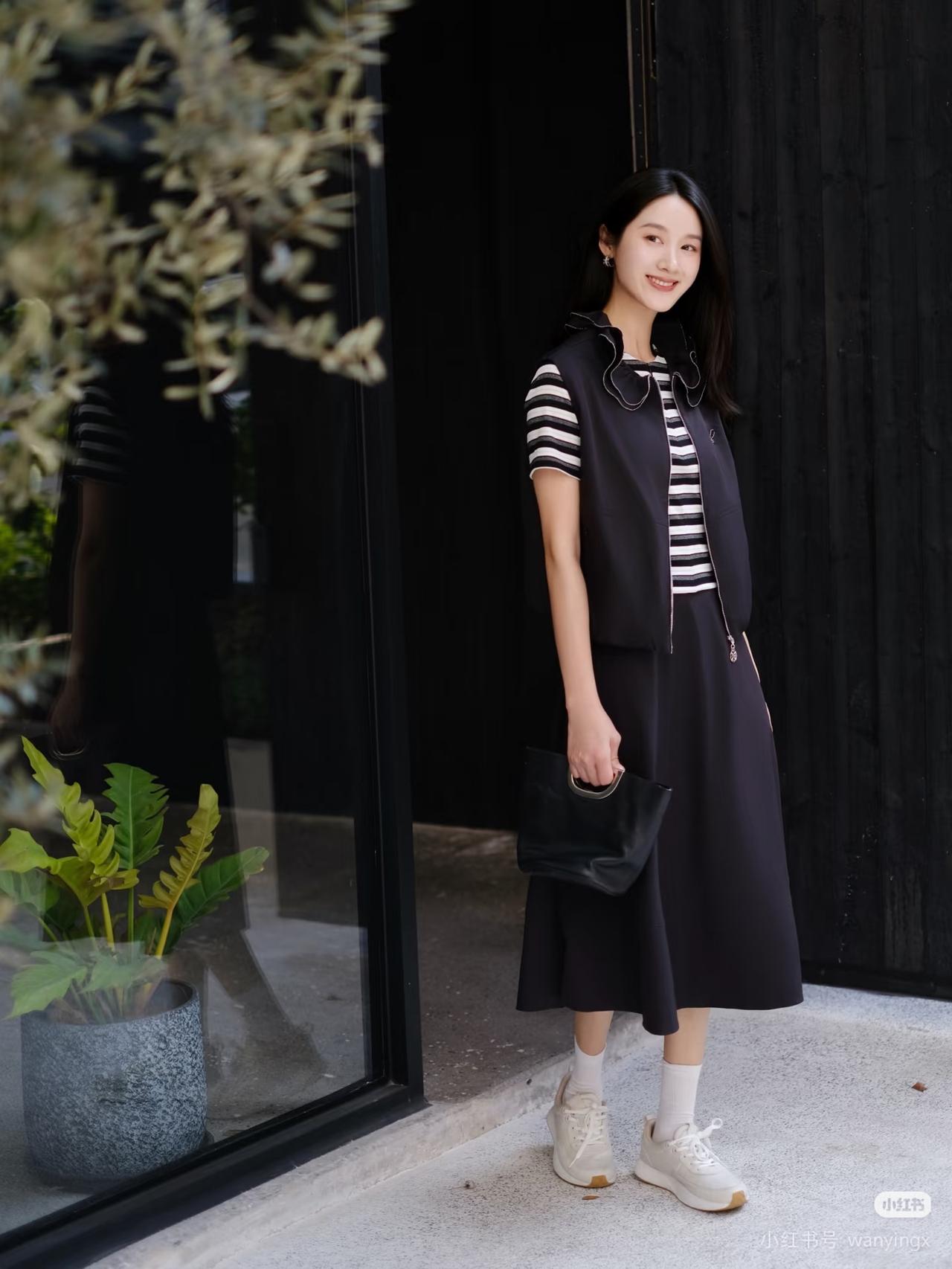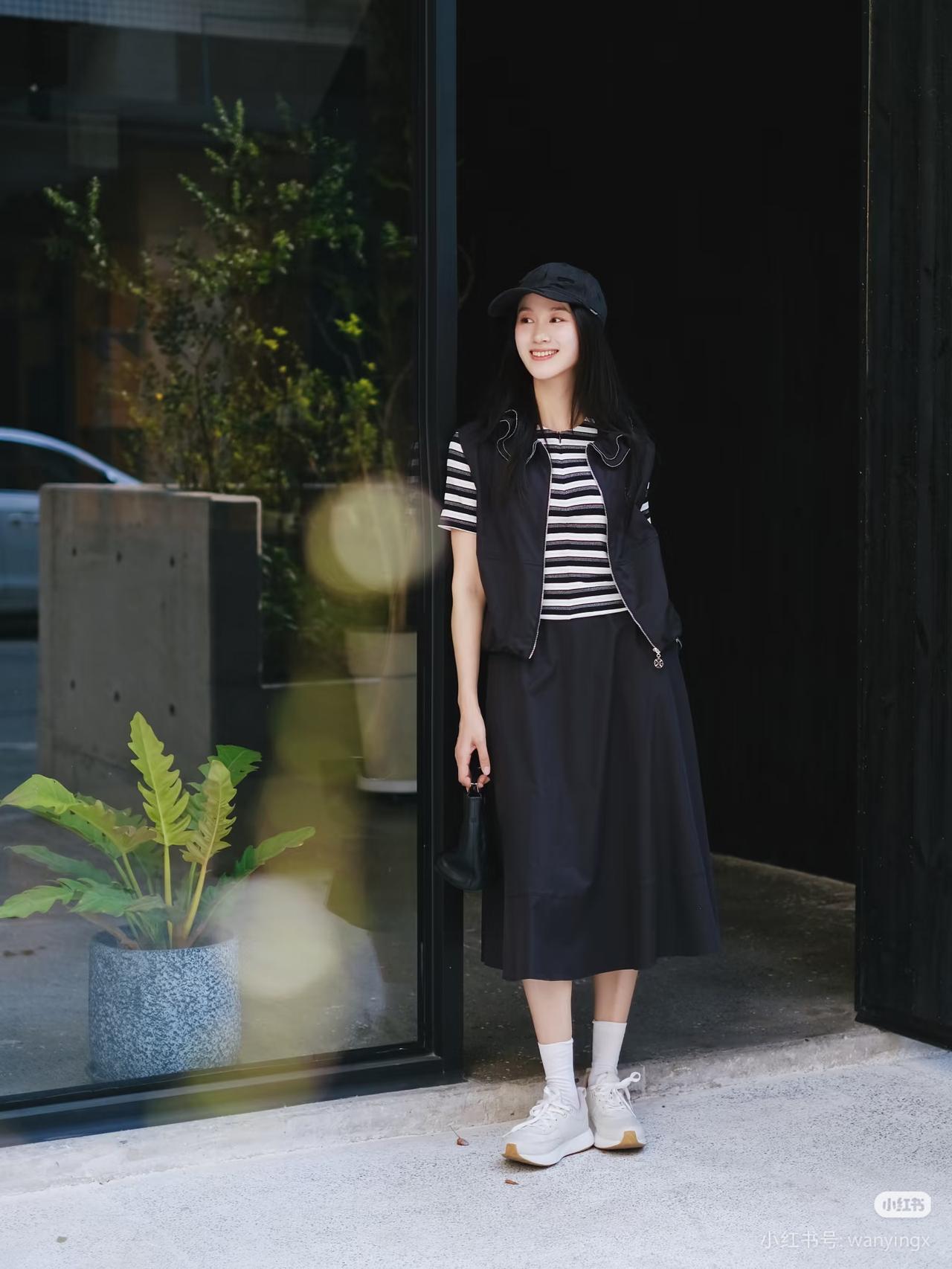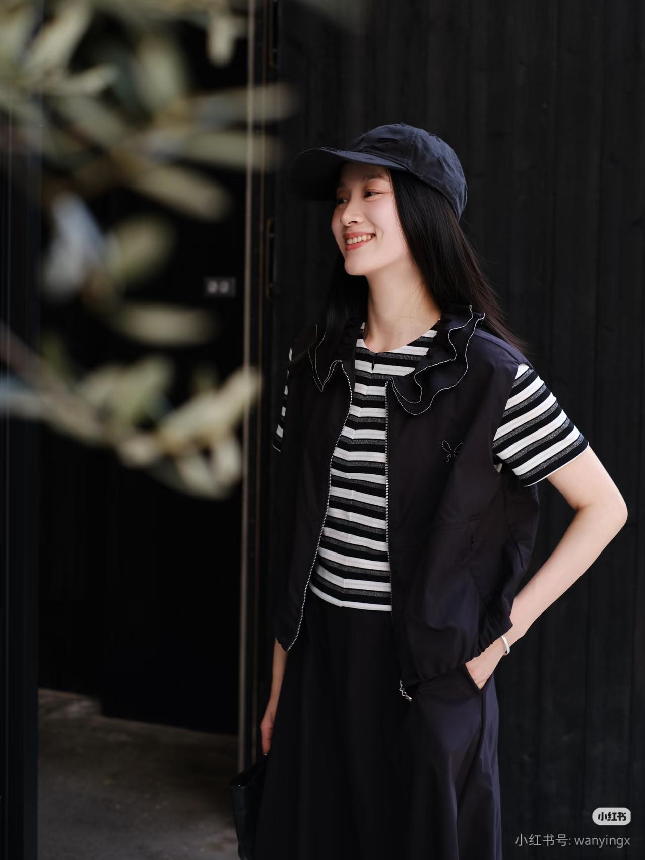 黑衣少女倚木凳,笑靥如花映秋光。