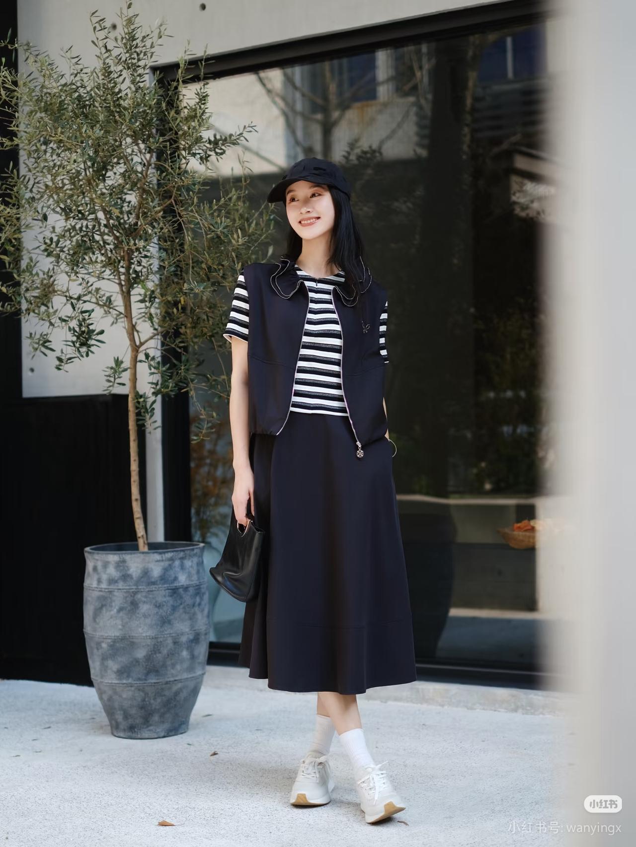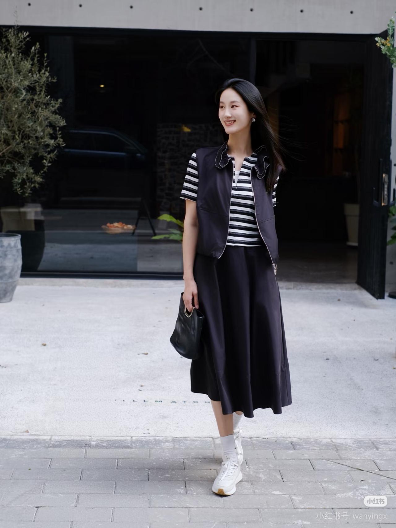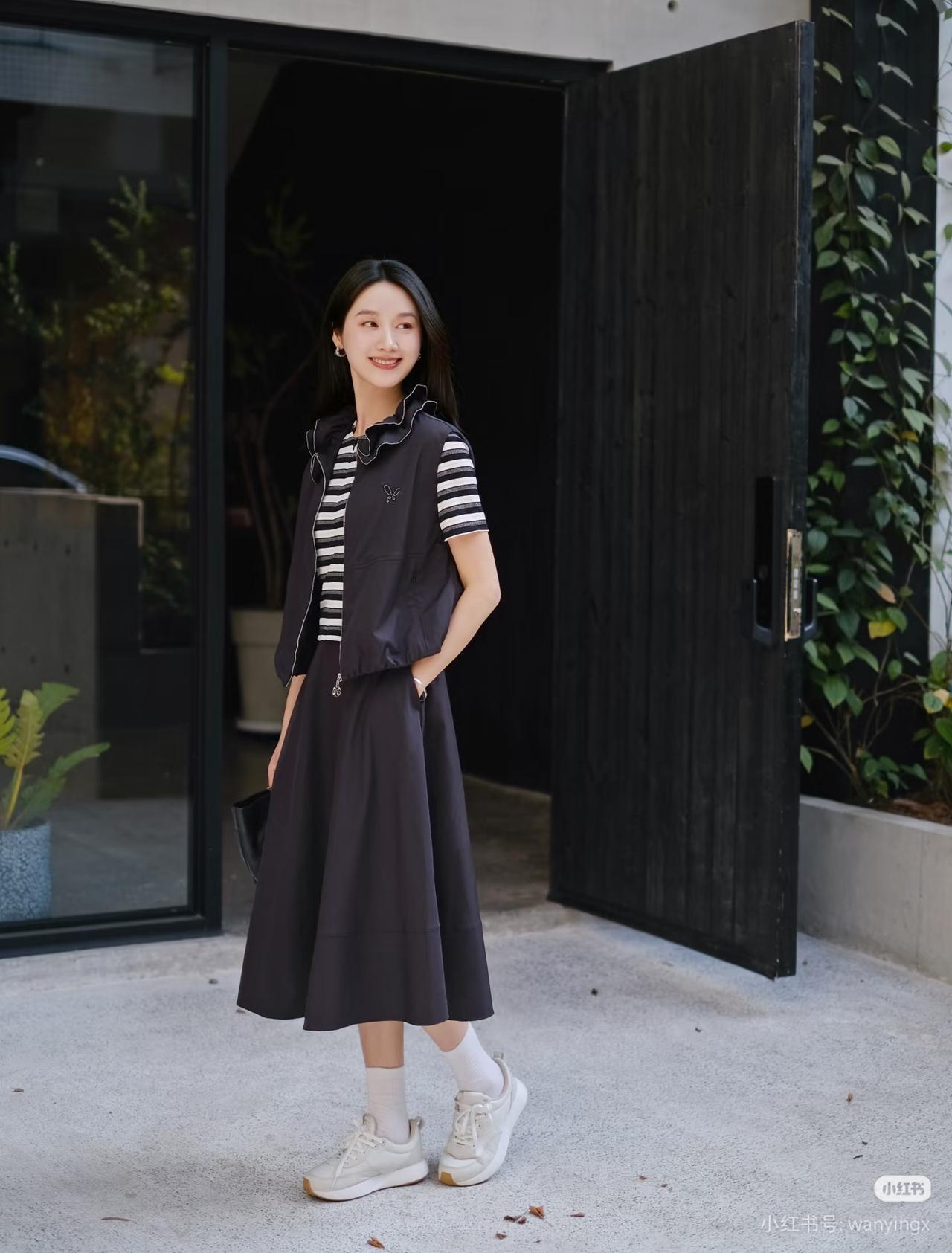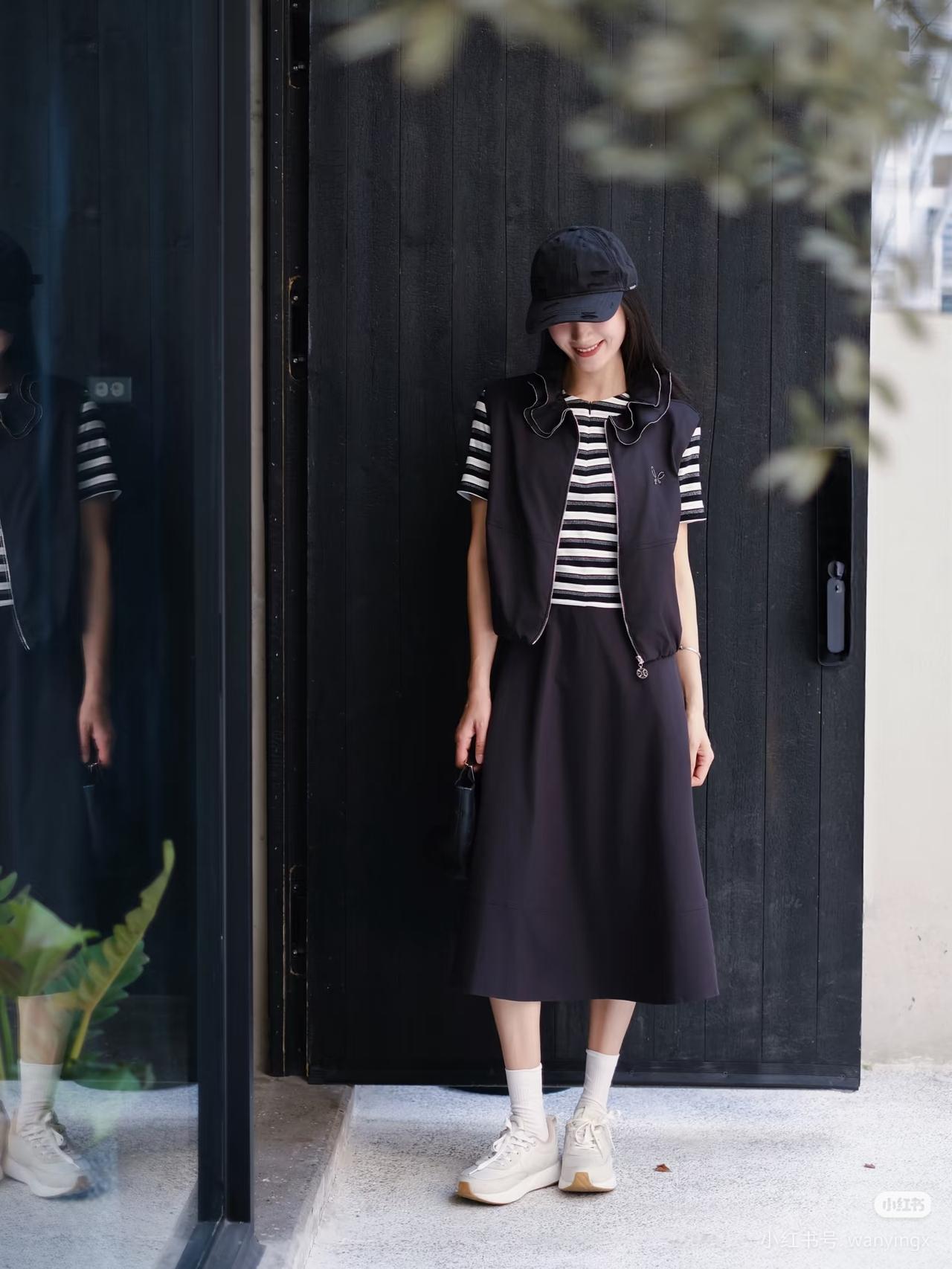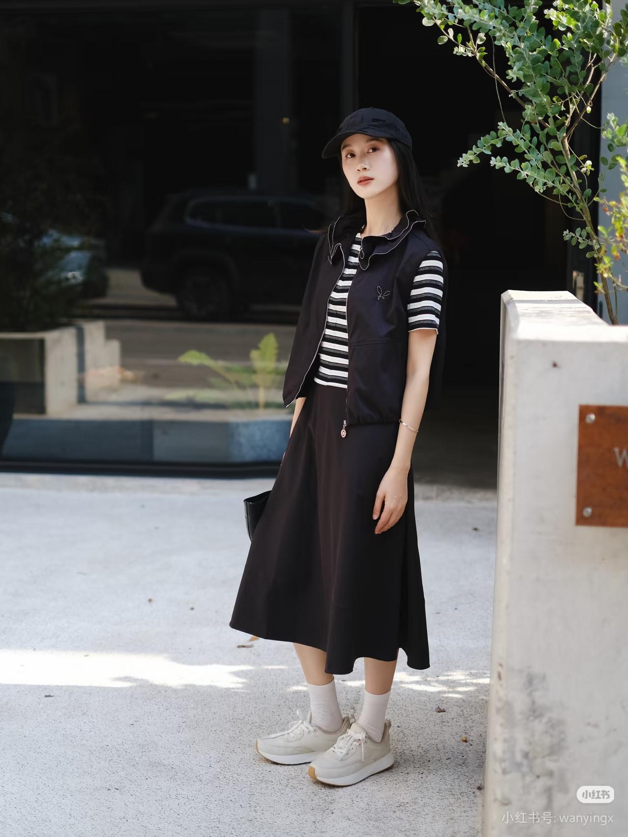 黑衣少女倚木凳,笑靥如花映秋光。