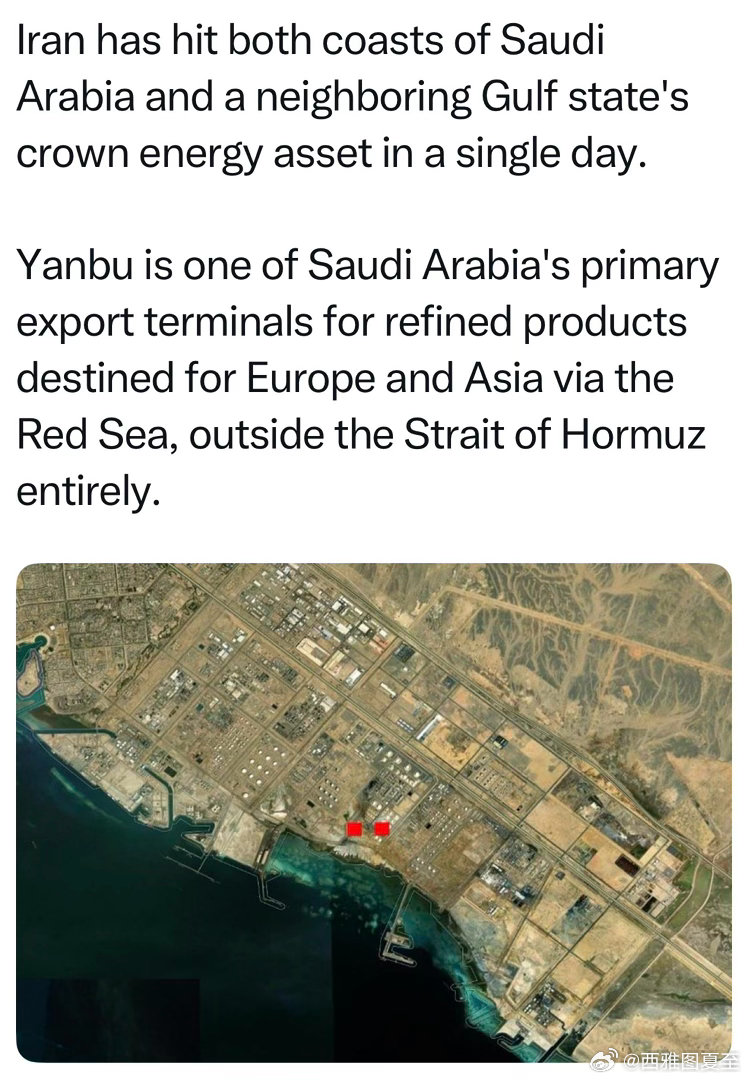 但战略意图明确:如果以色列再炸伊朗关键能源设施,伊朗会针对波斯湾到红海的输油管及其配套设施,让避开霍尔木兹海峡的油气运输渠道也走不通