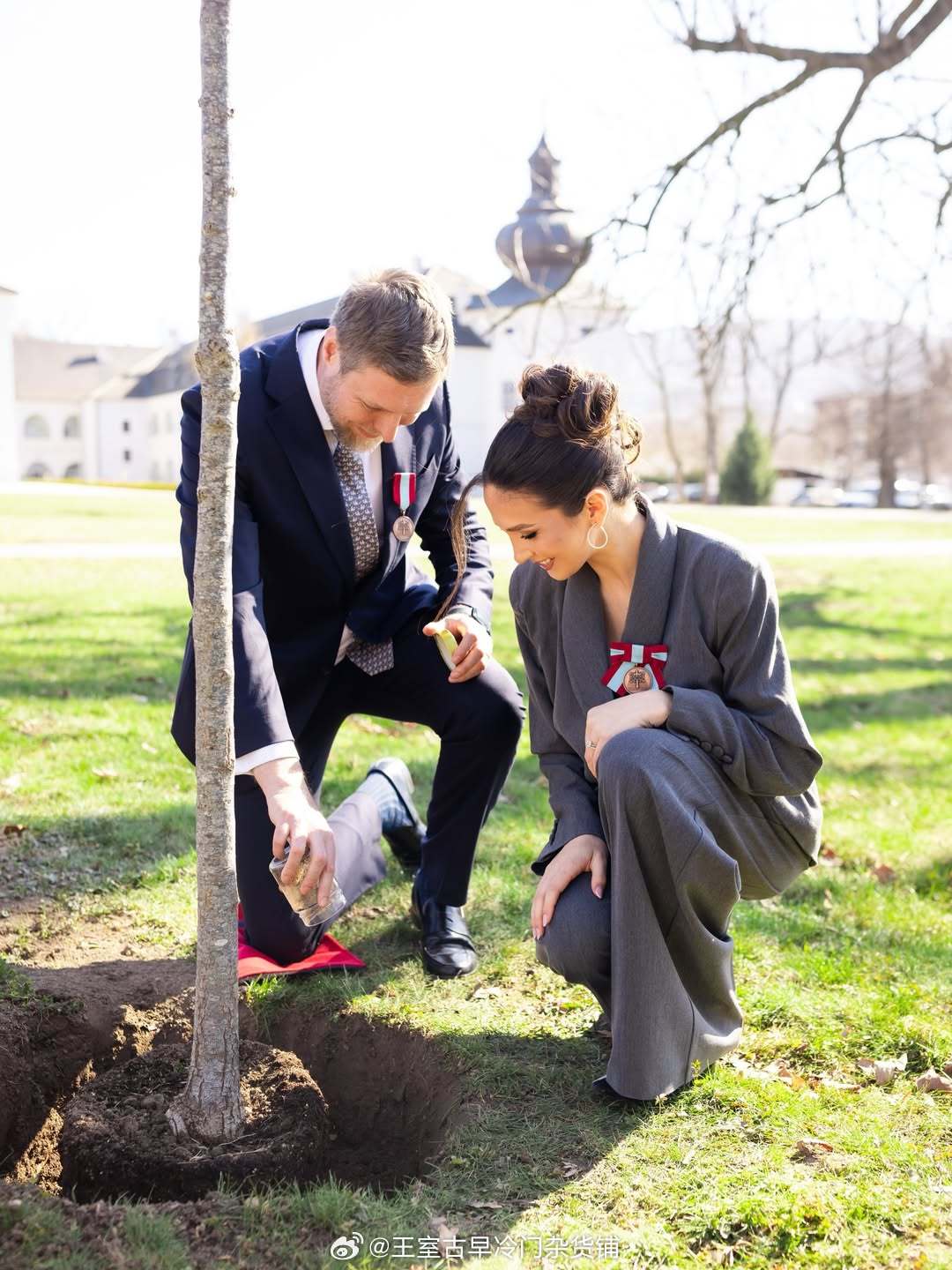 王室王室阿尔巴尼亚王室 莱卡王子夫妇探望杰拉尔丁王后的家族墓地,还种下一棵橡树。