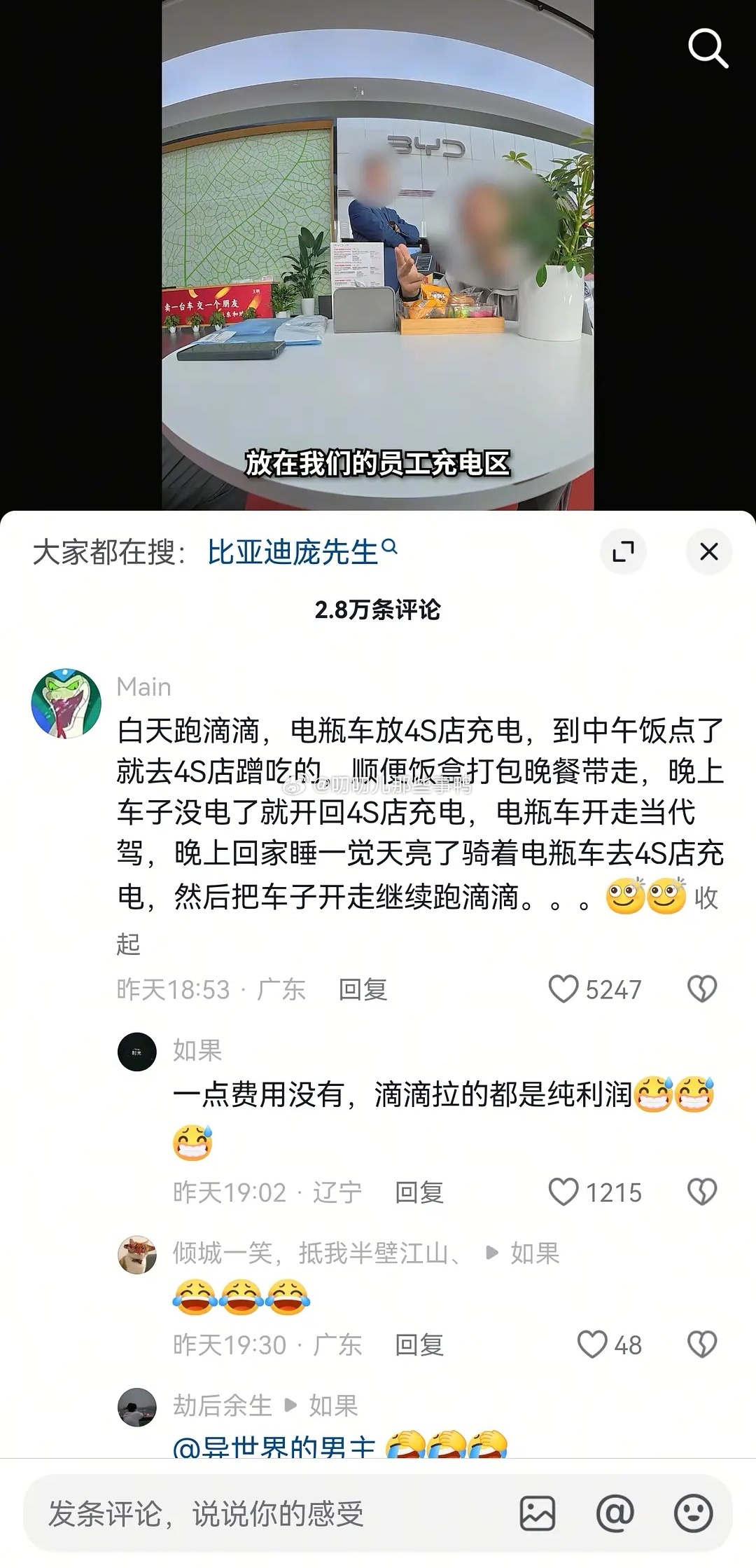 有人能在比亚迪4s店吃260天免费饭,还免费充电,被4s店拉黑了~😅😅