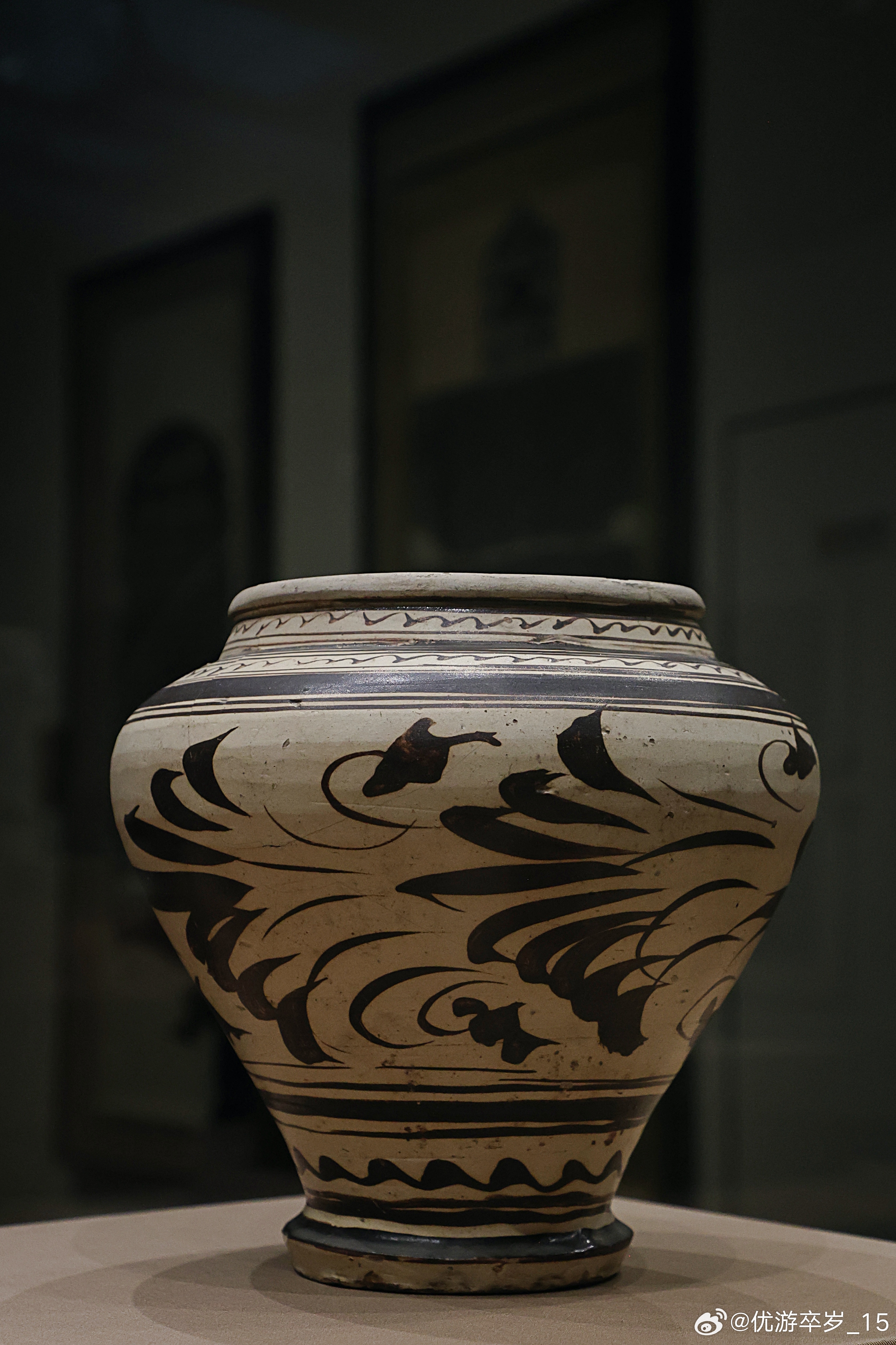我的2026 【中国之中-中原古代文明精粹】 白釉褐花纹瓷瓶宋(公元960-1279年) 驻马店市博物馆藏汝南县出土。这类白地褐彩装饰,是宋代民间窑场活泼创造力的体现。在宋代整体尚淡尚雅的美学风尚中,独树一帜地保留了一份来自泥土的奔放与野逸。清华大学艺术博物馆展出2026.2.8约会博物馆文物