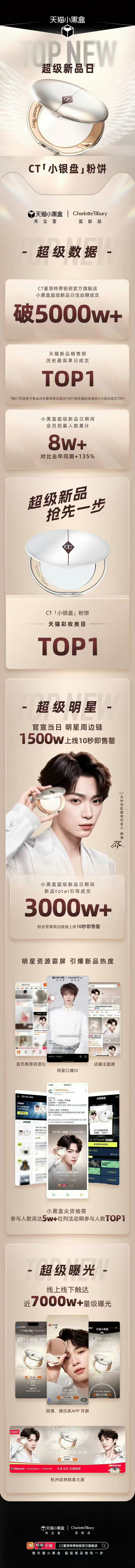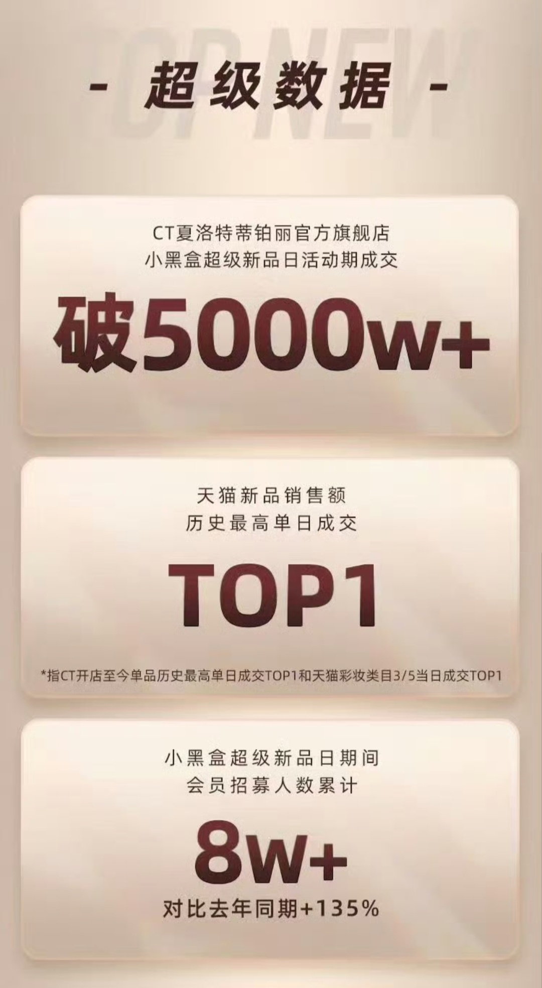 小黑盒超级新品活动期成交破5000w+!天猫新品销售额历史最高单日成交TOP1!(CT开店至今单品历史单日成交TOP1!)(天猫彩妆类目(3/5)当日成交TOP1!)