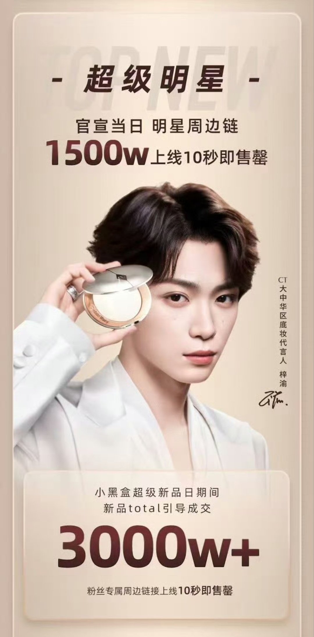 小黑盒新品期间会员招募人数累计8w+,对比去年同期+135%!上线10秒即售罄!官宣当日明星周边链1500w+,小黑盒超级新品日期间新品total引导成交3000w+!梓渝打破CT历史纪录