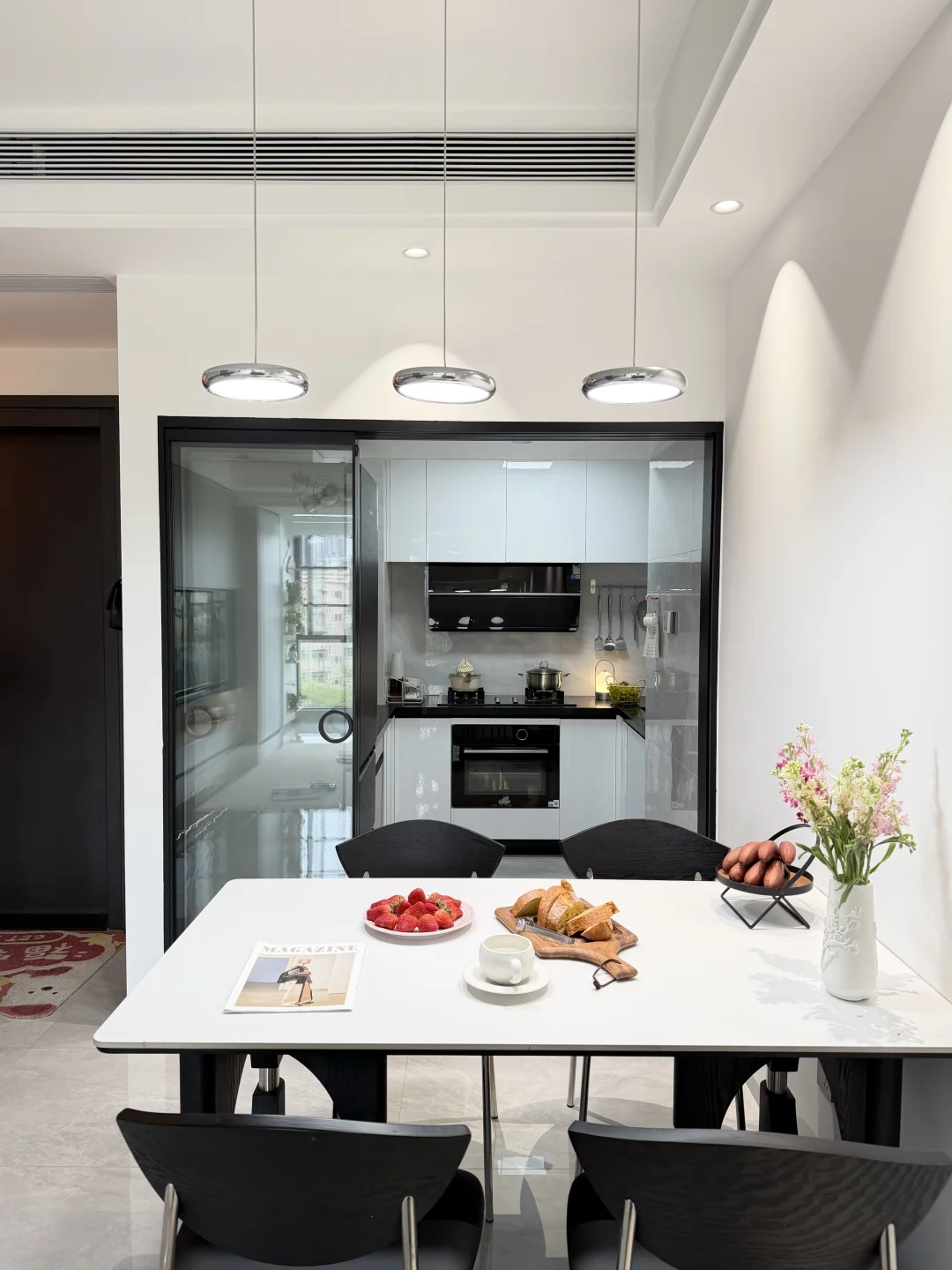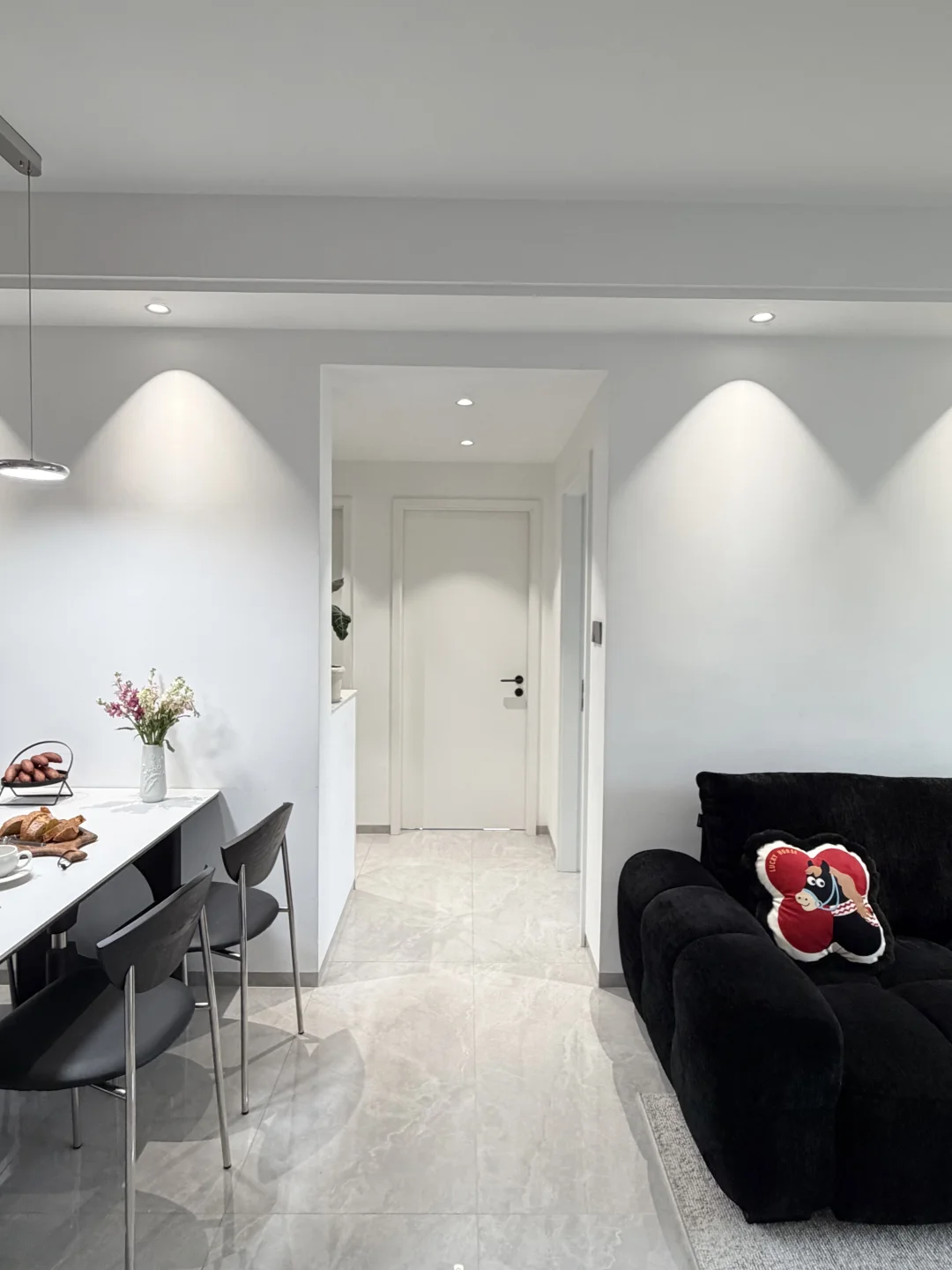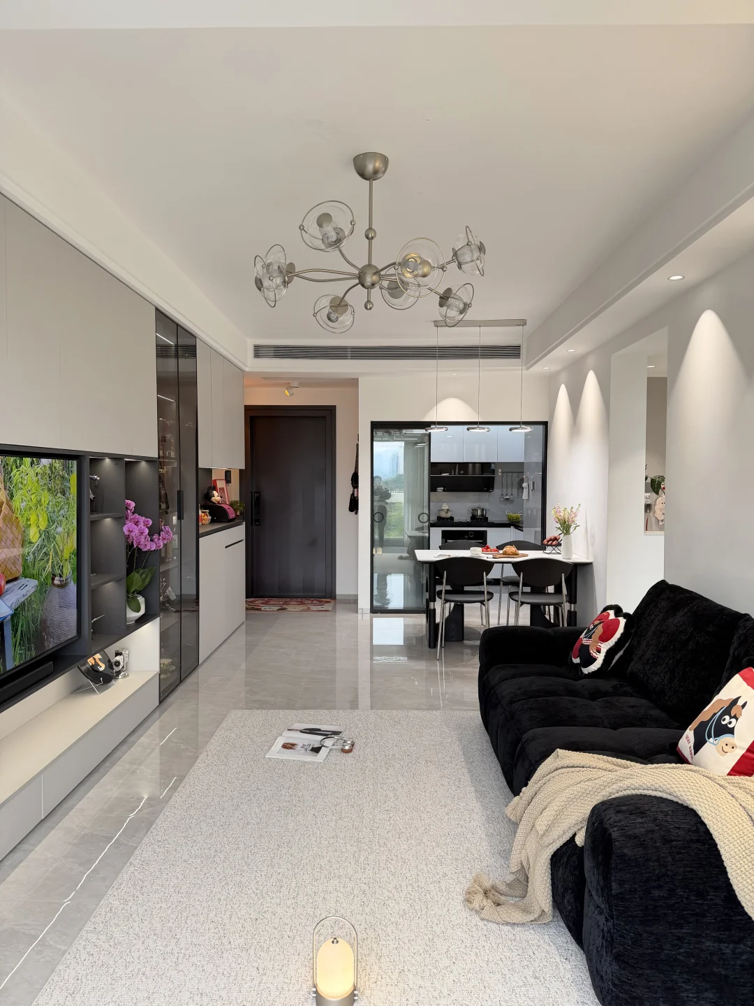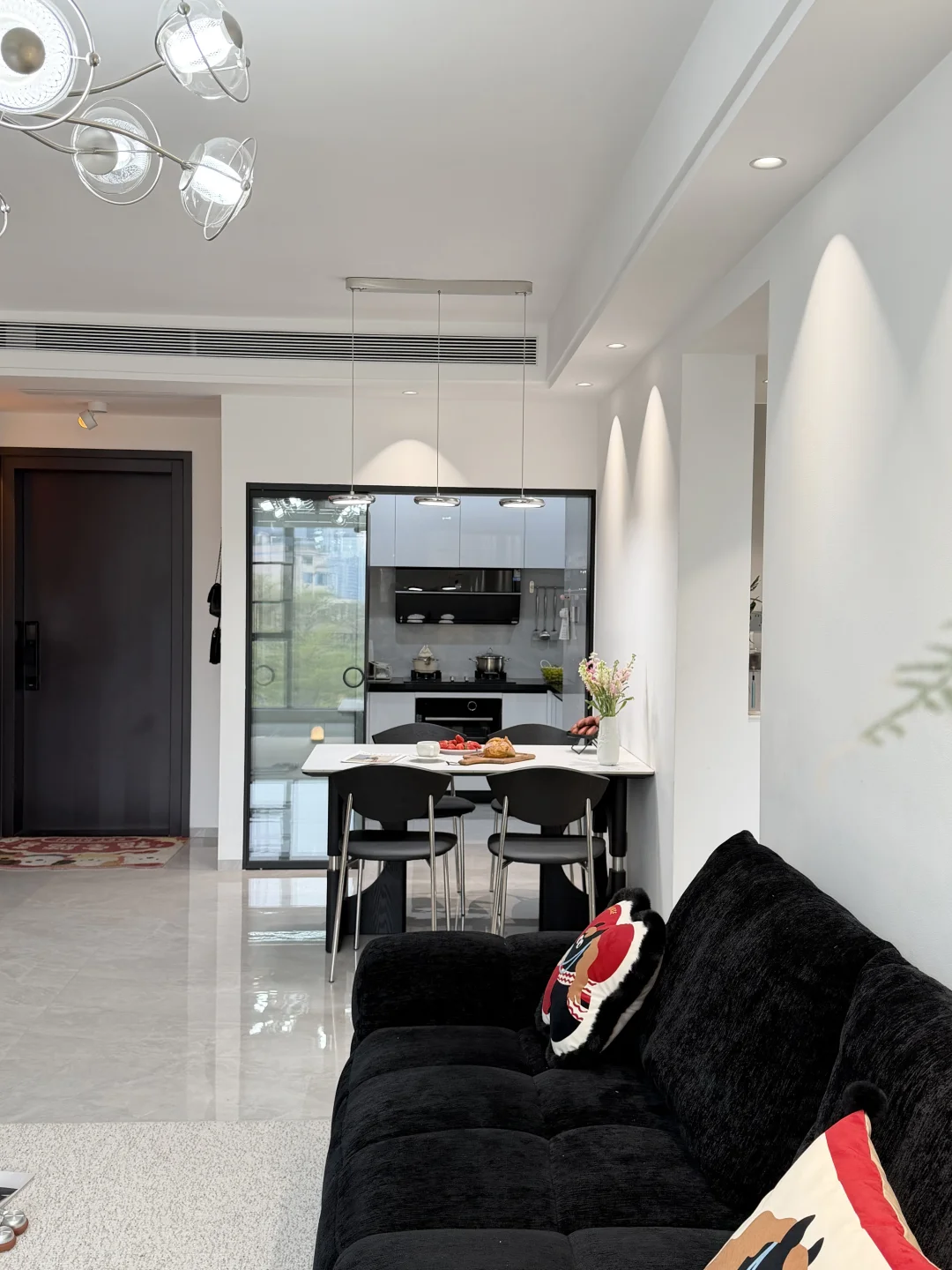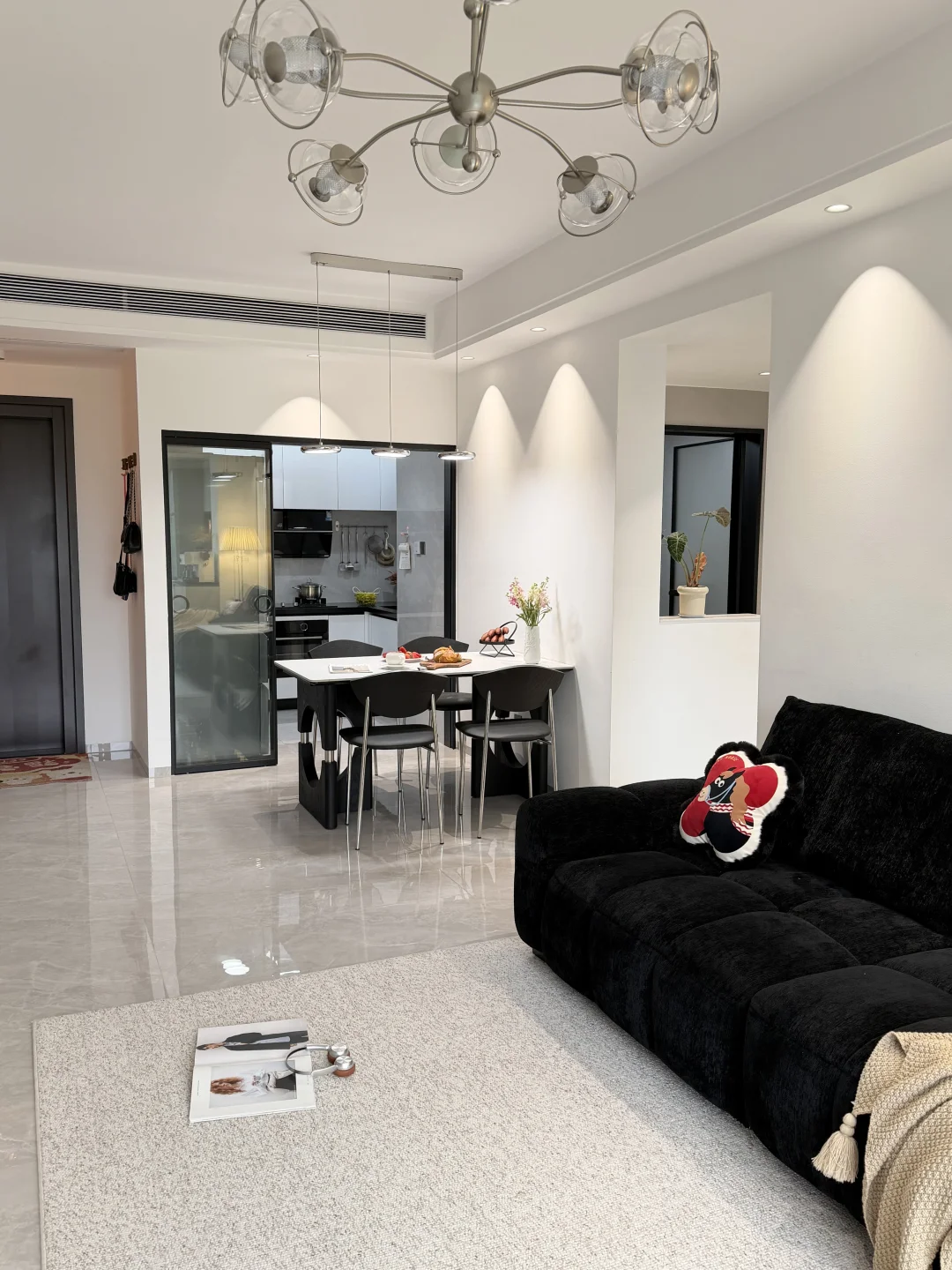 人生的第一套房,没有靠任何人 是个63平三房两厅的商品房~ 两人一起努力首付、装修 全程自己参与,自己做主! 按照自己喜欢的风格把房子装成了家🏡 客餐厅一体,开间3.5m 简单沙发➕1.4m餐桌,整体黑白极简风~ 谁懂啊!住进真正意义上属于自己的家有多幸福啊💕