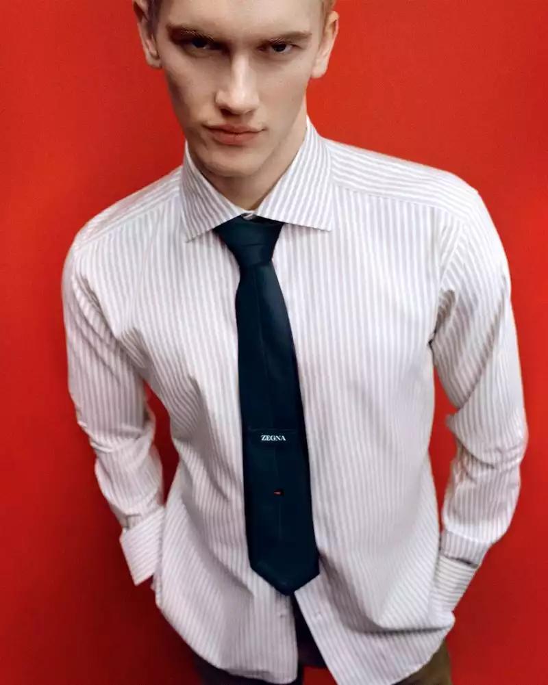 模特Max Tate出镜《HTSI Magazine》2026年3月刊,“How to wear a tie 如何打领带”,有趣的👔|摄影:Rodrigo Carmuega/造型:Aylin Bayhan