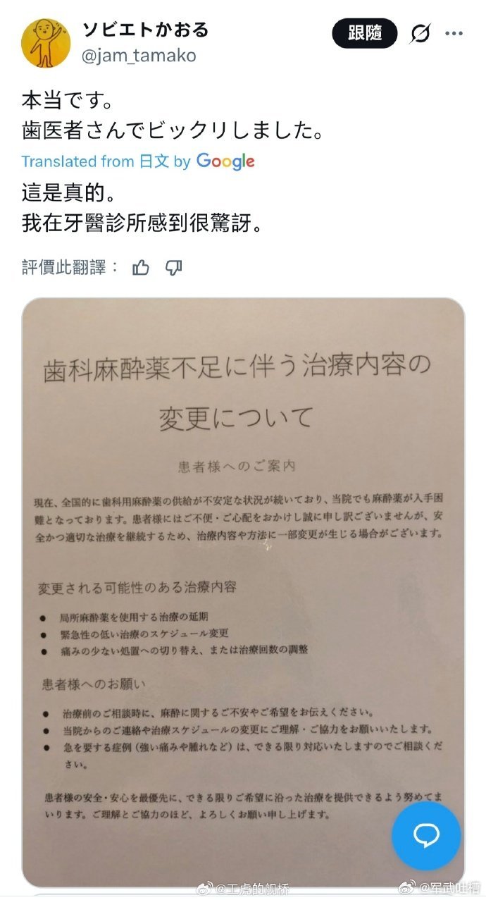 有点意思,因为中国的制裁,日本连牙科麻醉剂都闹饥荒了在日本做个牙科手术,现在是需