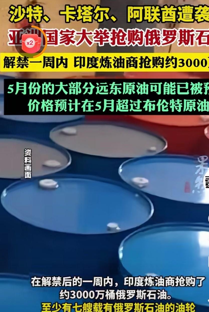 俄罗斯石油现在成了香饽饽,尤其是亚洲国家,竞相购买。谁也没想到中东战争成全了俄罗斯,原来俄罗斯遭到西方的制裁,除了中国少数国家买俄罗斯石油,几乎没有买家。俄罗斯的石油出现了大量囤积下,无法销售。现在好了,一下子火了,甚至供不应求了。 尤其是刚解禁的这一周,印度也都抢了3000万桶原油。印度疯狂的购油,现在主要靠中东,这下子俄罗斯已解禁,本来就关系友好,开始大量购买。现在韩国也与俄罗斯研究,俄罗斯提出要求,最好不要向乌克兰提供武器,那要买油就没问题。日本也想买,日本能源极度短缺,主要是靠进口,但是日本为了迎合讨好美国,以前就不买俄罗斯油了。这一次也来机会了,也想买一把。 中俄关系友好,以前制裁不制裁我们该买的还买。像亚洲的土耳其啦,都会买的。只要不制裁俄罗斯,俄罗斯的石油有的是买的。就算制裁俄罗斯,也可以通过印度转卖到欧洲。 赶快趁此机会俄罗斯挣一笔吧,要不然打仗太费钱了。