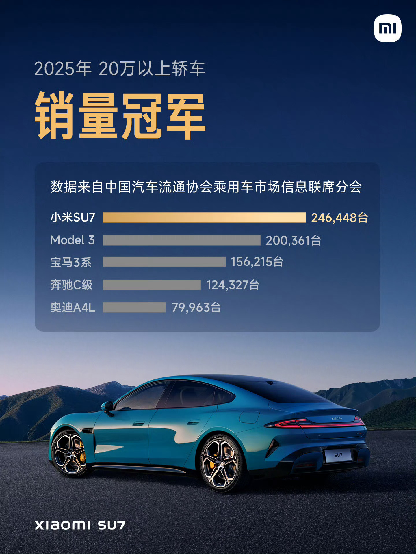 小米新一代SU7今日发布第一代小米SU7真的深受市场喜爱:发布24小时大定88898台!累计交付38.1万台!还是2025年20万以上轿车销量冠军!