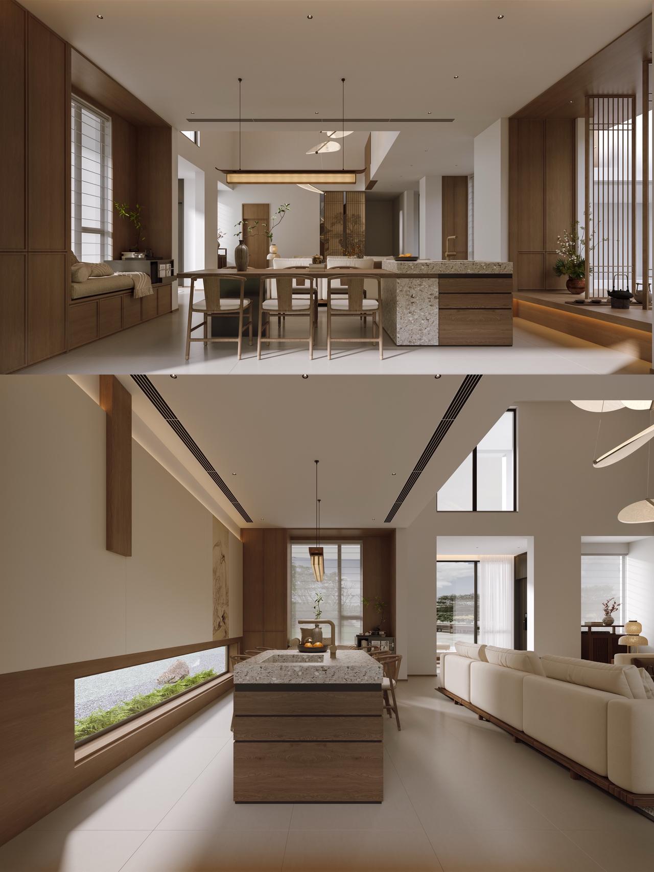 多彩贵州城温泉小镇宋氏美学合院别墅设计!Hello👋 朋友们🧑🤝🧑 我是你们的老朋友阿杰! 今天给粉丝们带来最近的一个案子《多彩贵州城温泉小镇合院别墅装修,宋式美学风格设计》 项目信息📋 📍楼盘:多彩贵州城温泉小镇 🏠户型:合院别墅 📏面积:500㎡ 🖼️风格:宋式美学风格 🎨【设计解说】 删繁就简,留白藏韵 一院一景,宋韵天成 褪去繁杂,归心东方 ✅极简留白,拉伸别墅空间尺度 ✅原木素材,还原宋瓷雅洁质感 ✅功能与诗意共生,适配现代人居 1️⃣空间留白,藏东方意境 摒弃繁复堆砌,以素净墙面、原木线条与大面积采光窗,框入院中红枫、青石水景,让自然成为室内画卷。走廊与挑空区的留白处理,呼应宋画“疏可走马”的空灵,既显别墅尺度开阔,又藏着贵州山水的温润气韵。 2️⃣材质本真,承宋式风骨 全屋以浅灰微水泥、原木、麻质织物为主材,还原宋瓷“素色雅洁”的质感。木格栅屏风、圆顶天花、线性灯槽,复刻宋代建筑的斗拱与檐角细节,既保留中式韵味,又适配现代生活的舒适与便捷。 3️⃣功能与诗意共生 茶室、挑空客厅、餐厨一体区,以通透格局串联,满足家族社交与日常起居。卧室以低饱和色调与极简柜体,营造“静以修身”的宋式睡眠氛围;卫浴间干湿分离设计,兼顾雅致与实用,让宋式雅致融入生活每一处。 👉【关于我】 一位充满热情、细心、靠谱的90后设计师。拥有别墅、洋房、跃层、大平层、普通住宅10年设计经验。为装修设计发愁的你排忧解难! ✅擅长风格 意式、新中式、现代简约、奶油风、宋式美学、中古风、法式风、现代轻奢等… 📄【个人案例】 中铁阅花溪|中铁逸都|中铁阅山湖|阅山湖云著|华润悦府|中海映山湖|茅台广场|美的林城|金融城|融创九樾府|中海印龙泉|华润九悦|龙湖天曜|龙湖湖山原著|万科鸣翠|万科麓山|铁建城|龙湖舜山府|远大美域|观山小区|建发和玺|保利公园 。。。。。。 贵阳装修 多彩贵州城 宋式美学 别墅装修