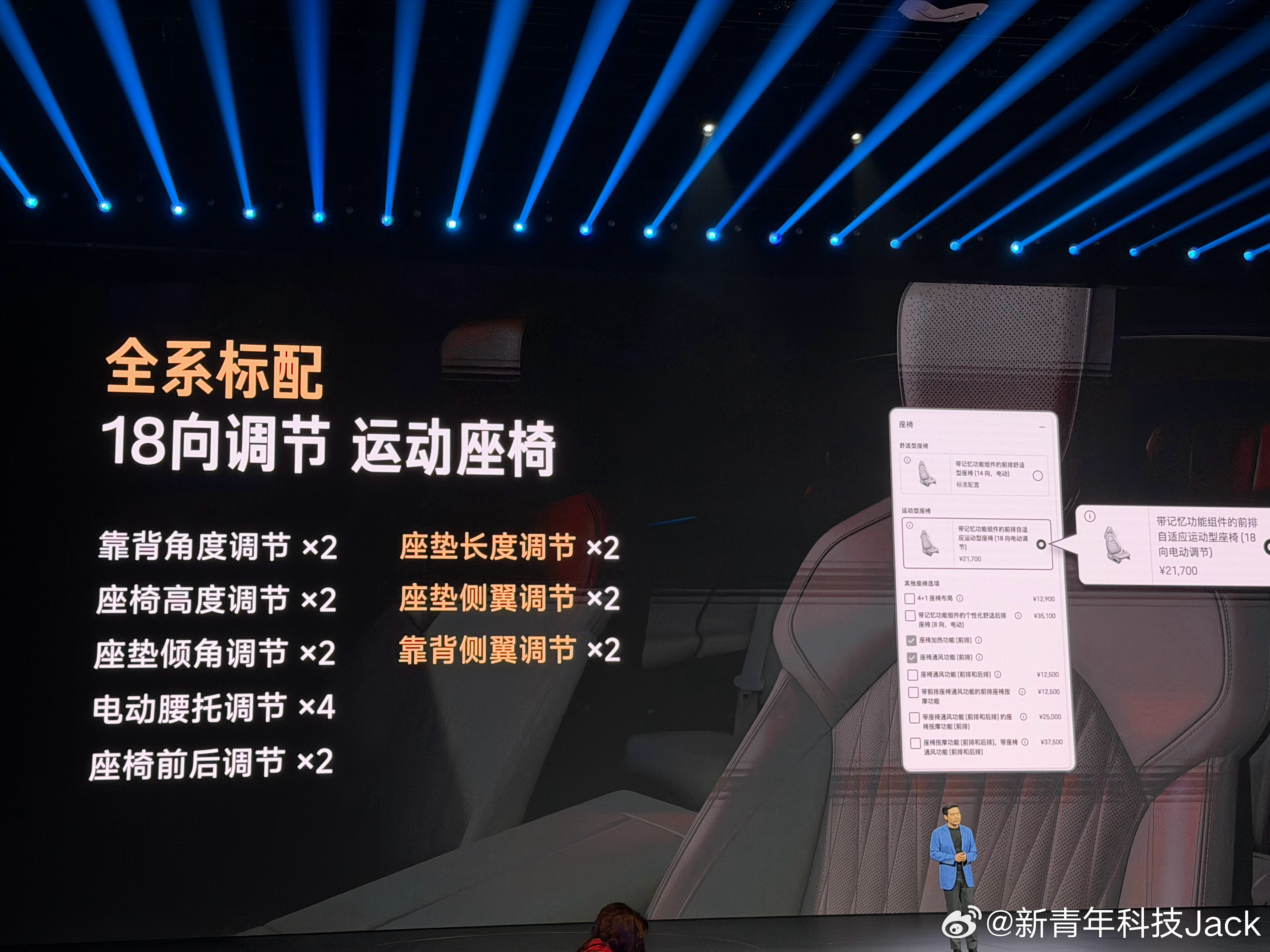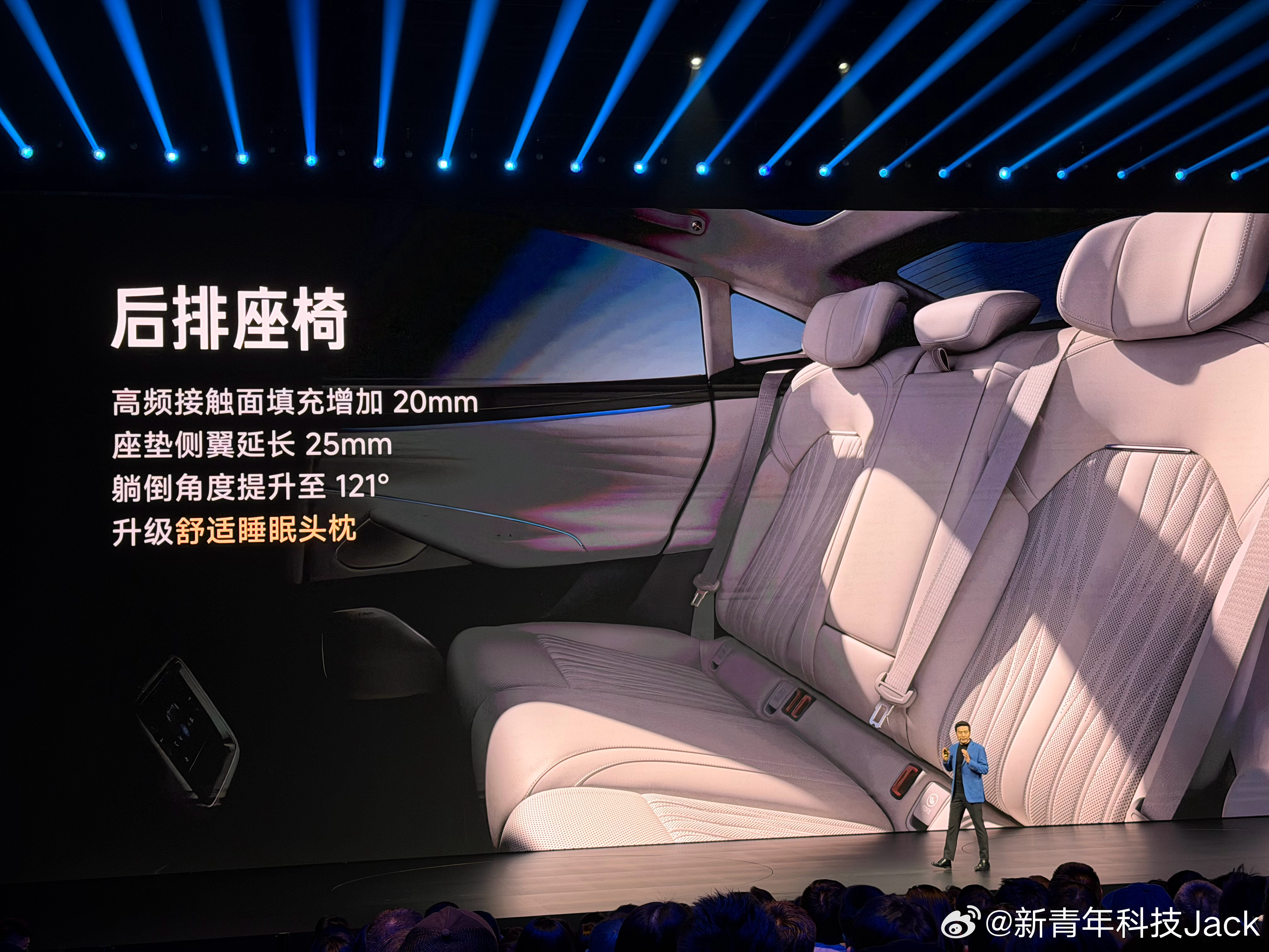 首先前后排座椅舒适度升级了,有按摩坐垫更长,18点运动座椅调整,副驾有零重力座椅。