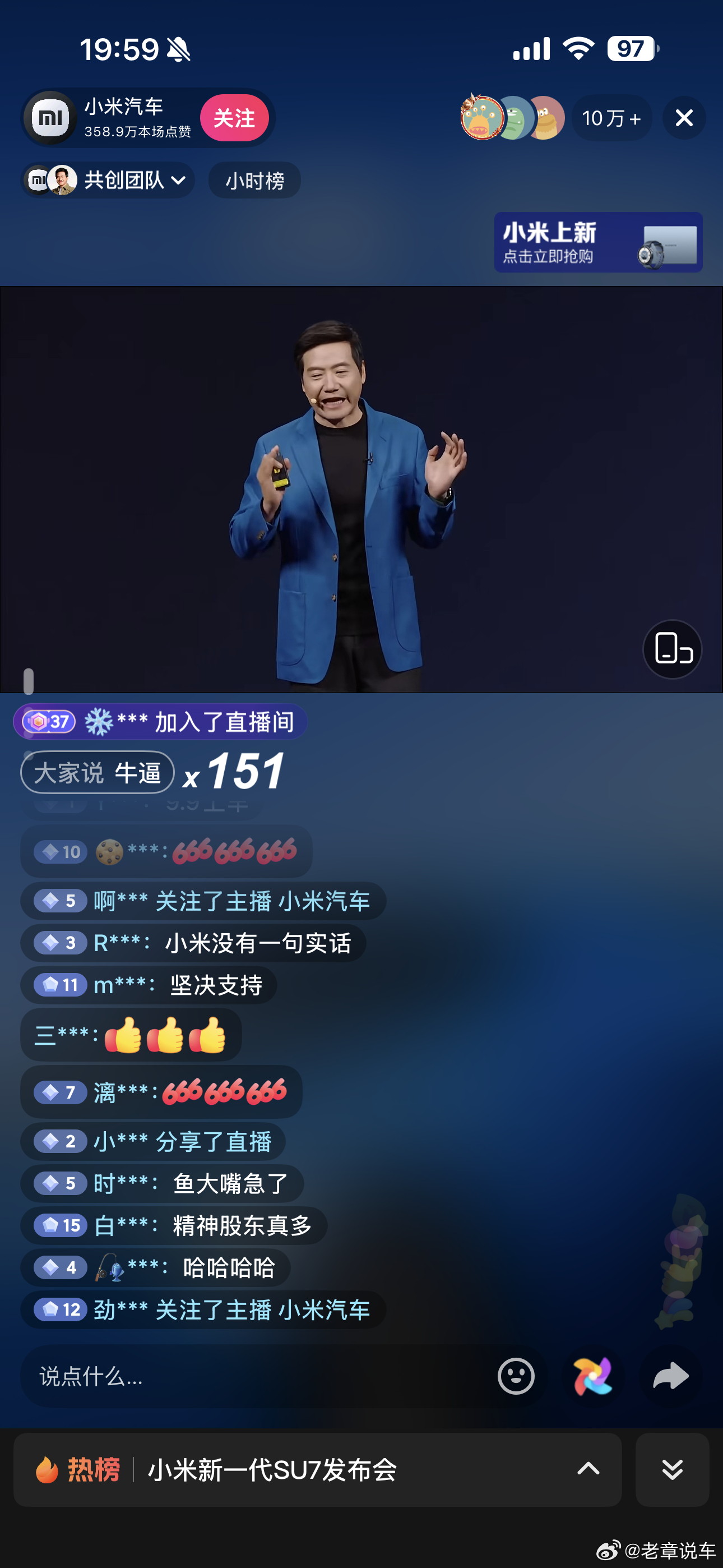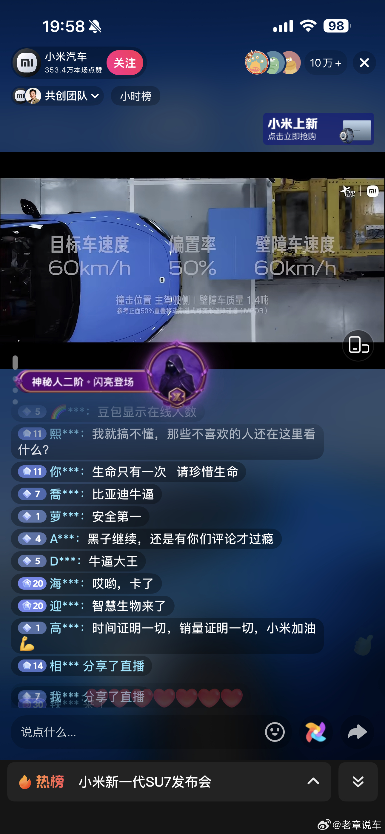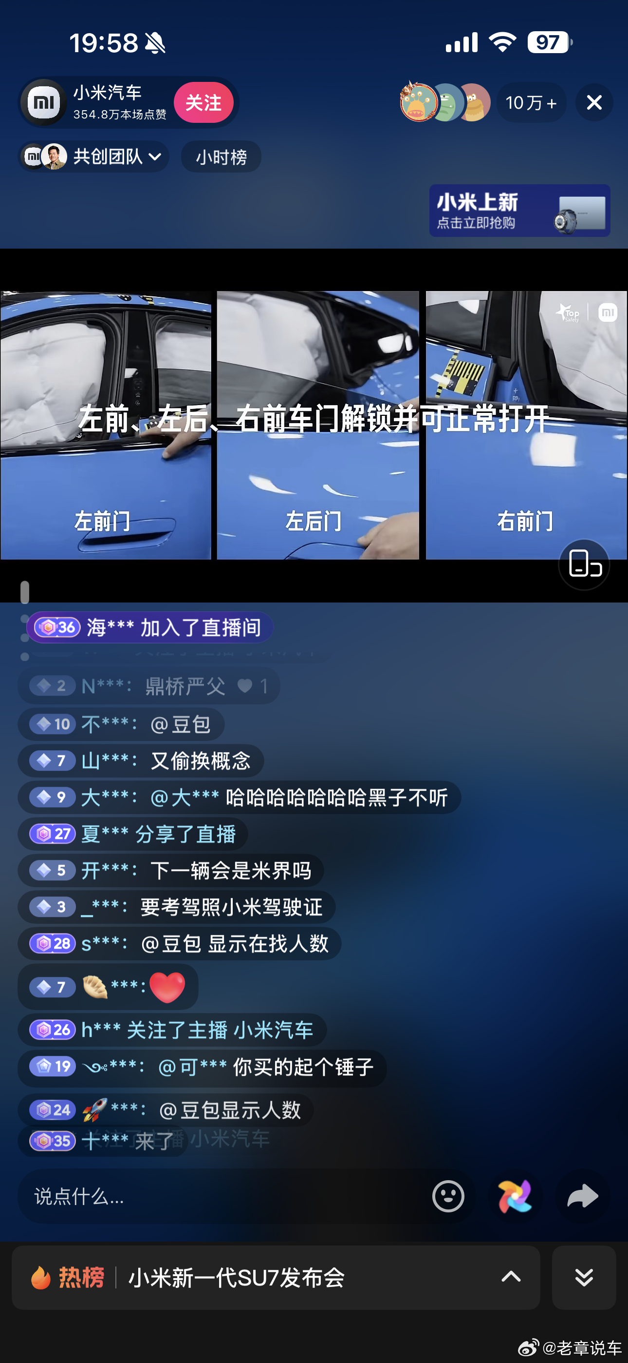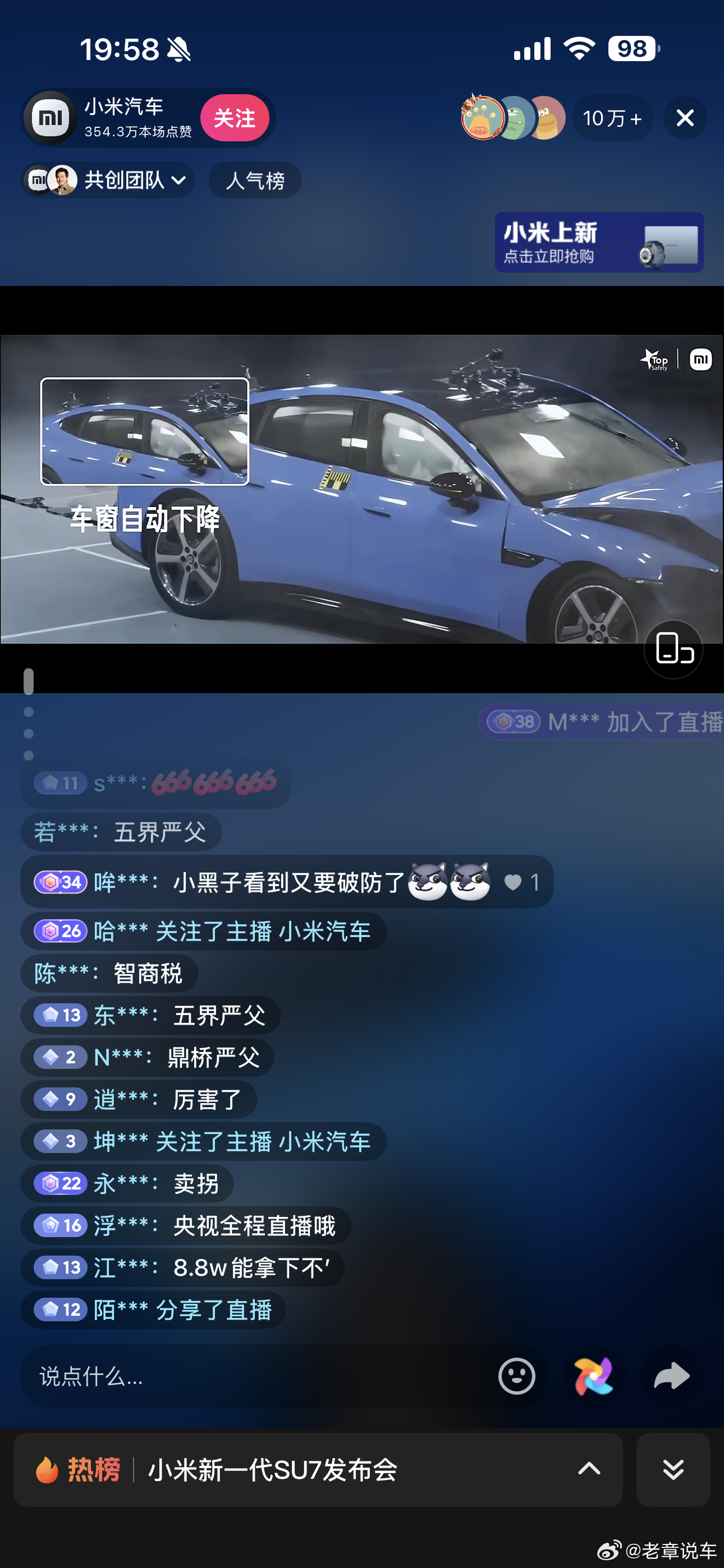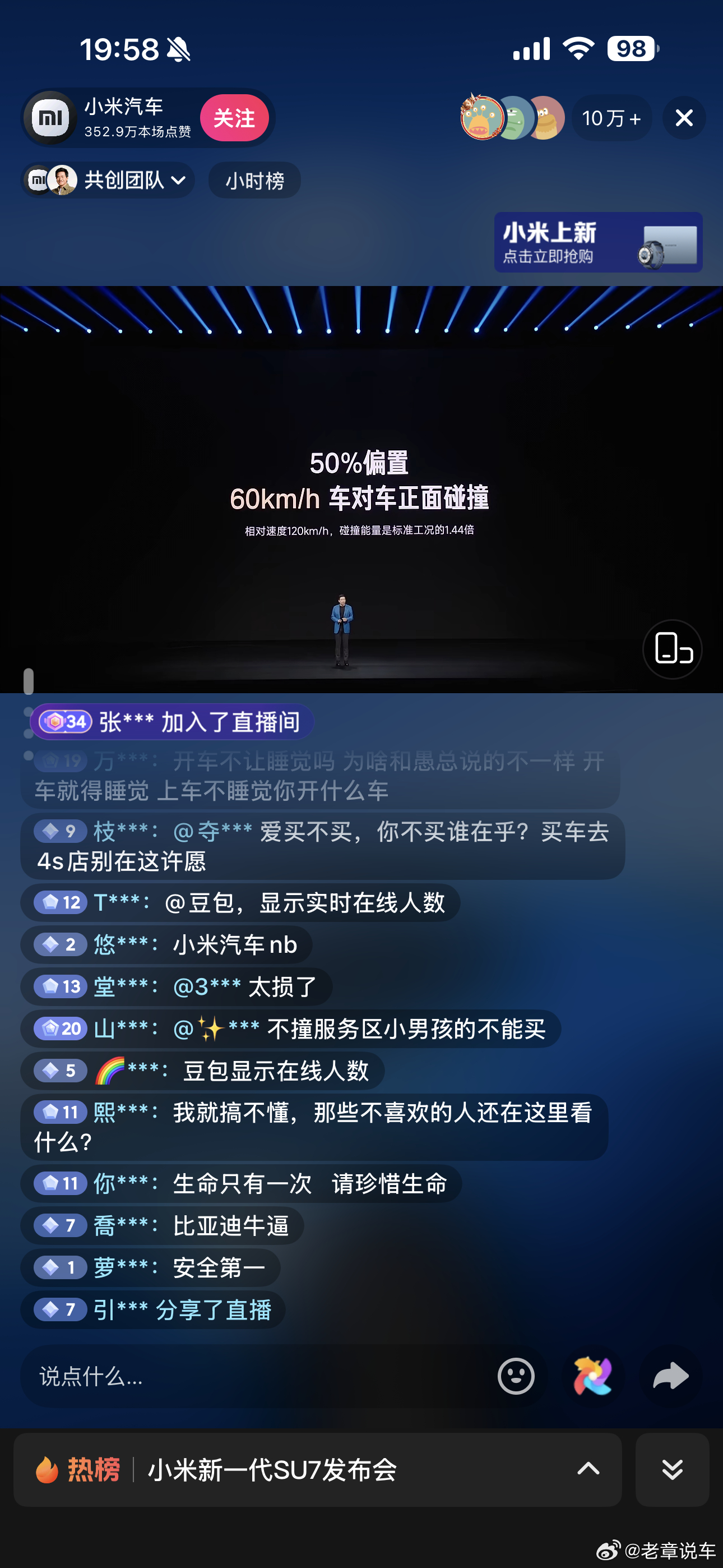 新一代su7上市直播,这黑子们不少啊!小米汽车新一代su7