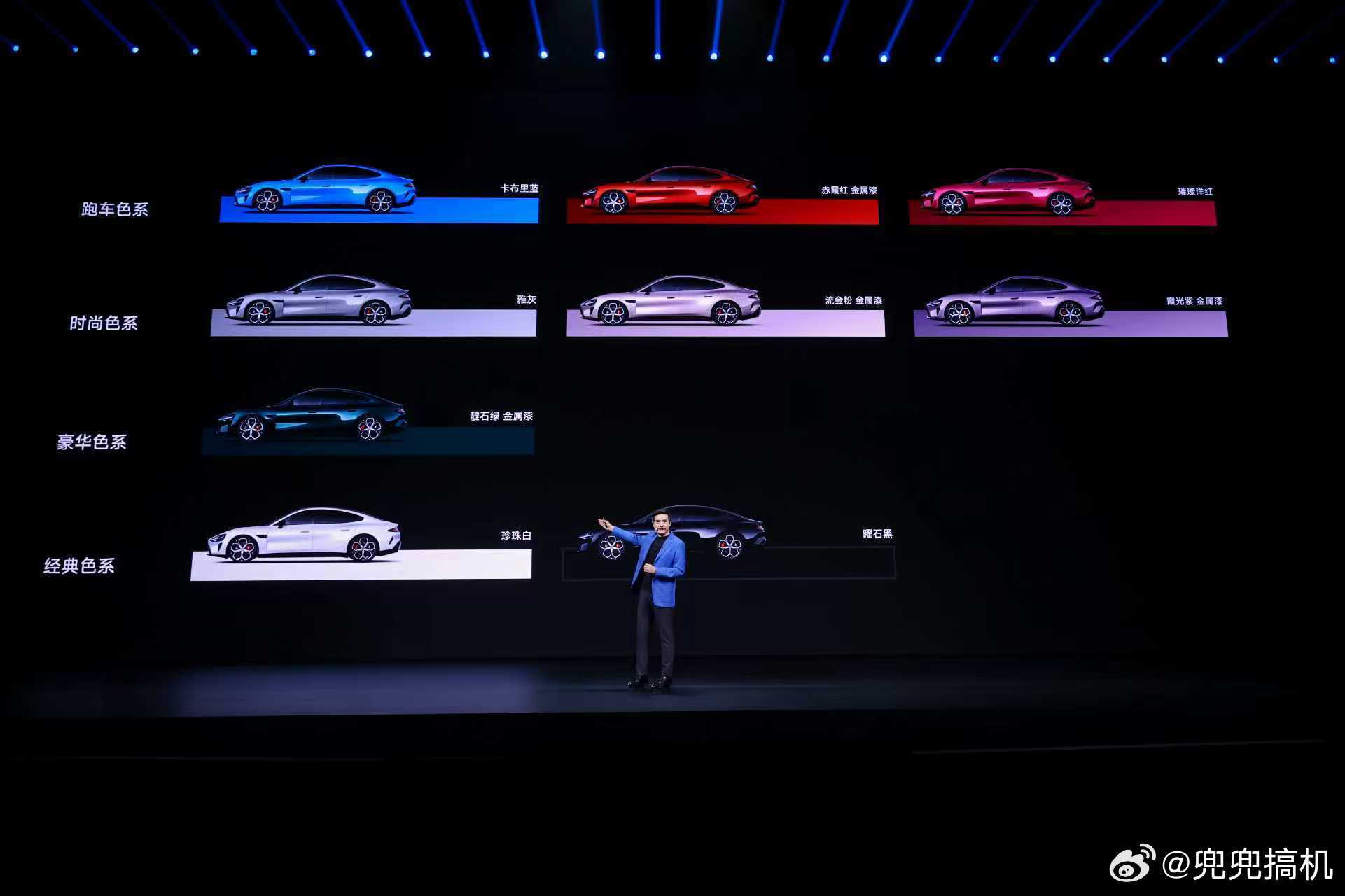 小米新SU7 今晚一定都被全新SU7 刷屏了吧? 来总结一下这次的配置:外观9种配色:卡布里蓝、赤霞红、靛石绿、流金粉、霞光紫、璀璨洋红、雅灰、珍珠白、曜石黑