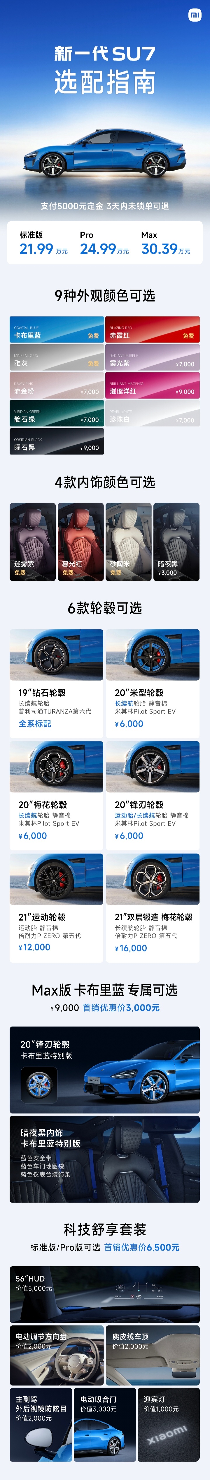 新一代小米SU7价格21.99万元起,3月23号之前即使锁单了也能修改选配,前提是版本不变。