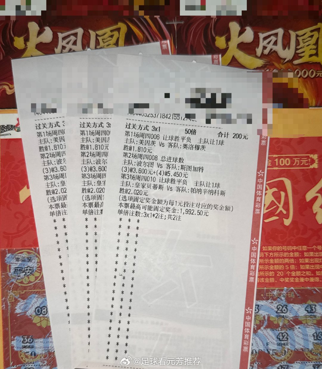 周期:006 欧协杯球队:美因茨vs奥洛穆茨方向:让胜数字:2-0 3-0 3-1—————————————————周期:008 欧联杯球队:波尔图vs斯图加特方向:3/4球数字:2-1 2-2 1-2—————————————————周期:010 欧联杯球队:贝蒂斯vs帕纳辛纳科斯方向:让胜数字:3-0 3-1 4-1