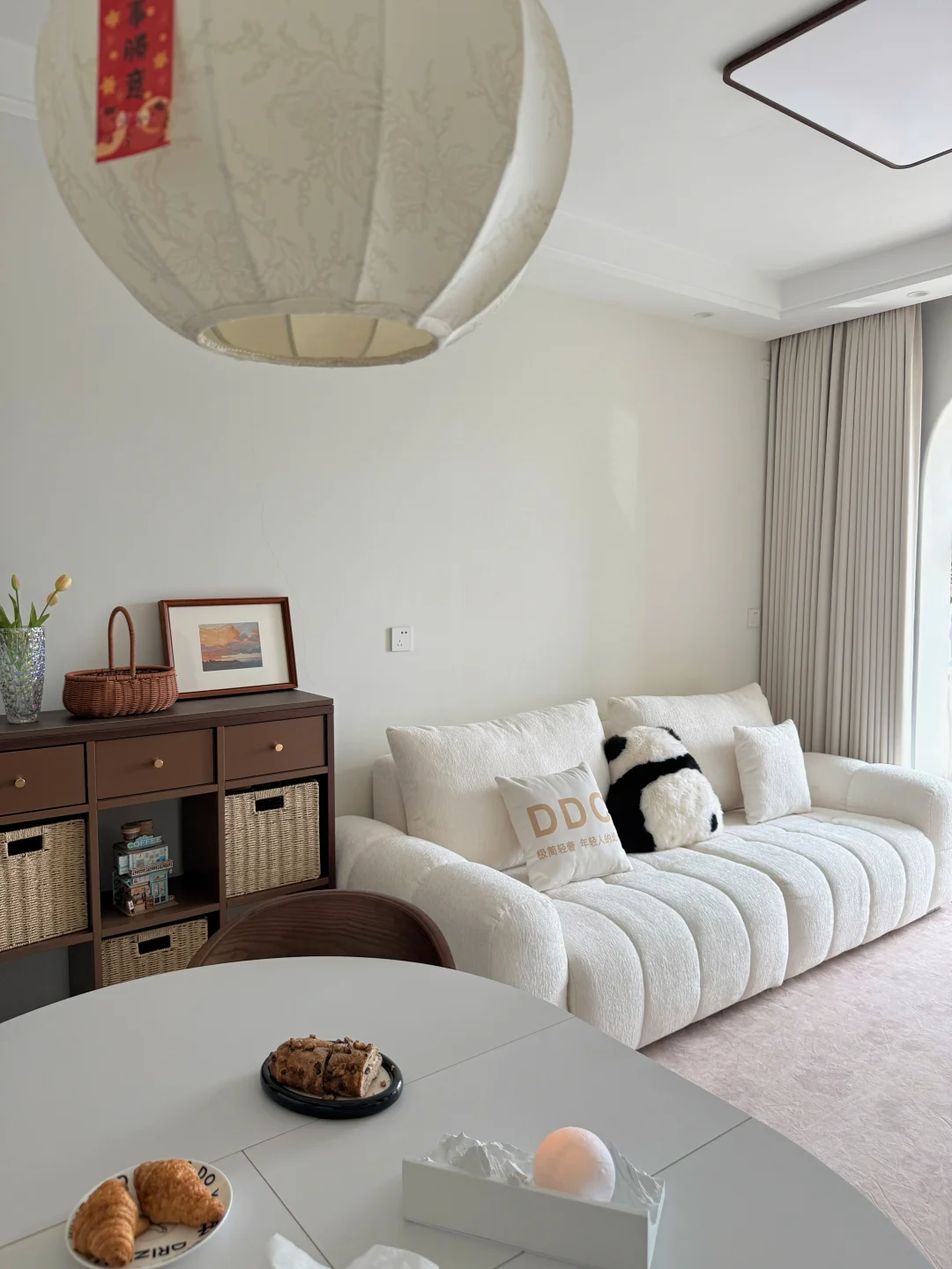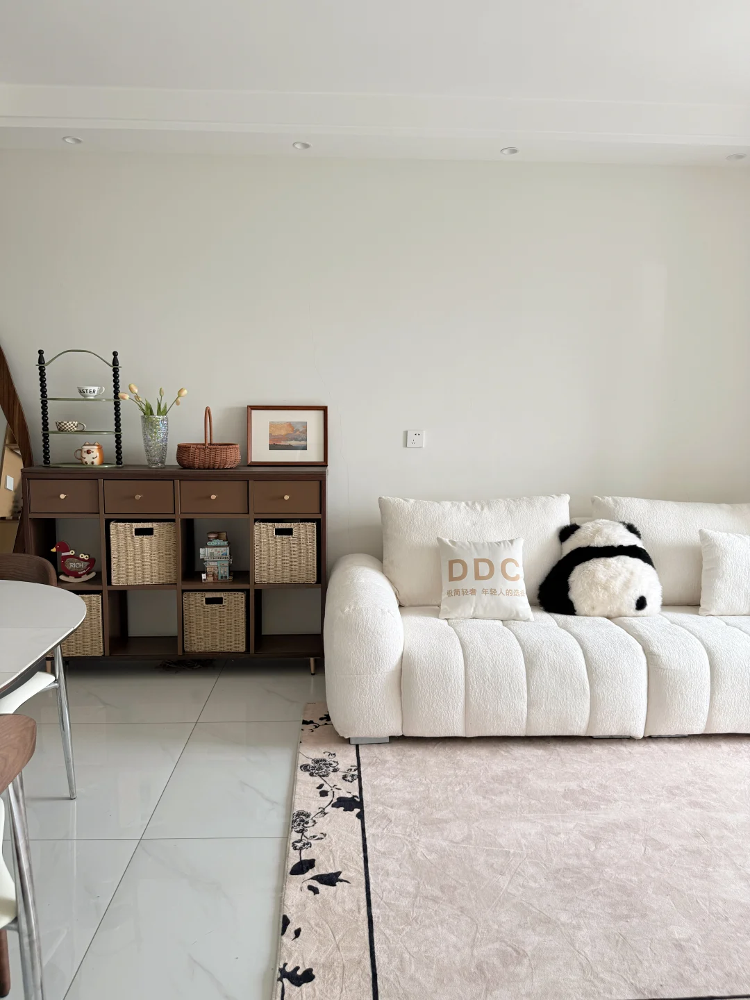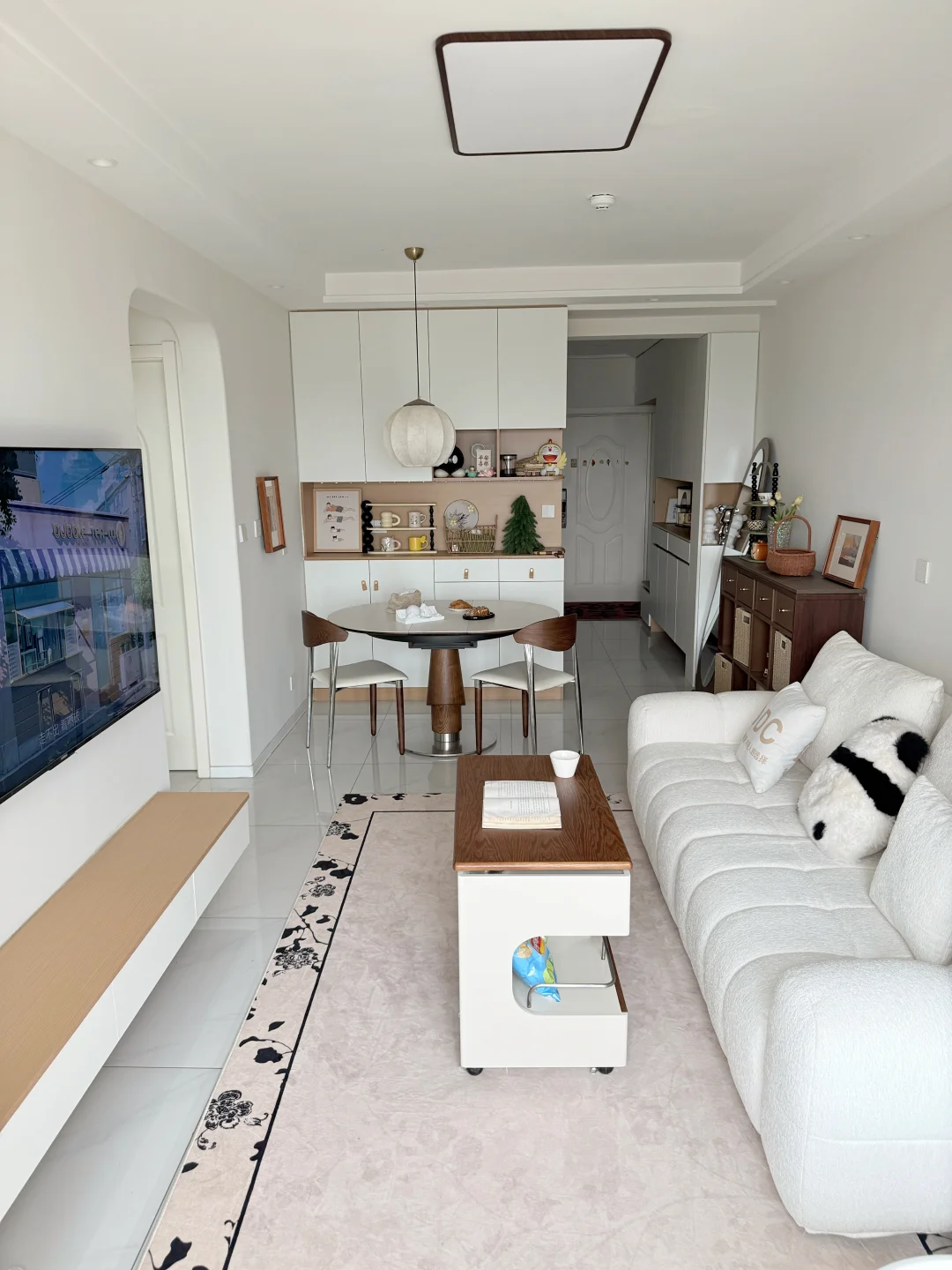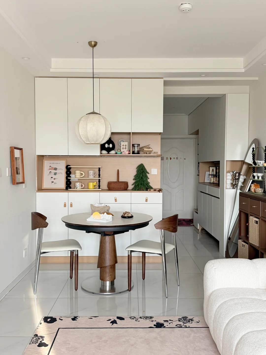 哈喽宝👋 这里是八月的67平小家(套内55平) 🦋 ⚪️🟤🟡 不做木地板也可以奶油复古风啦 客厅乳胶漆是杏子灰 暖暖的颜色让家里温馨十足 ✨关于尺寸 客厅开间:3米 |深度:6米 餐厅尺寸:1.8m×1.5m 小卧室:5平方 🪵 小小房间总是给予我大大的能量 住在自己设计的小家 真的太幸福啦[彩虹R][彩虹R]