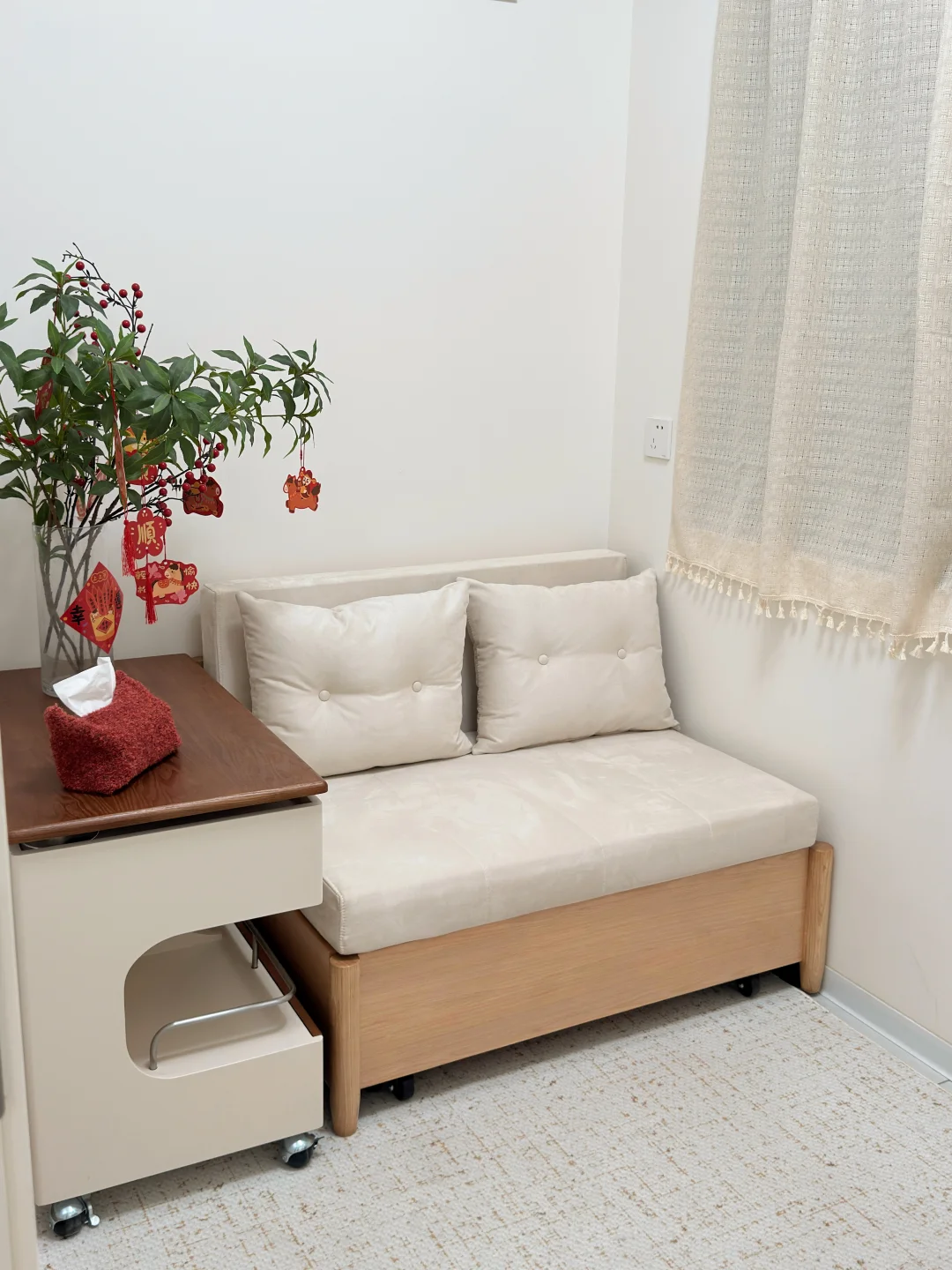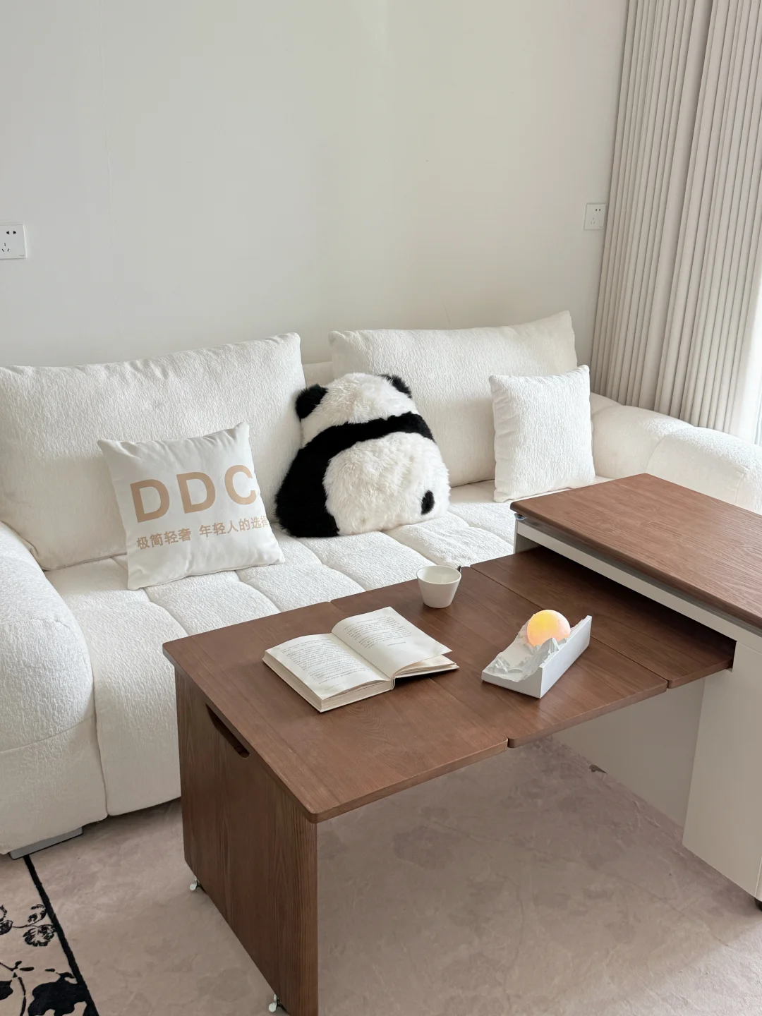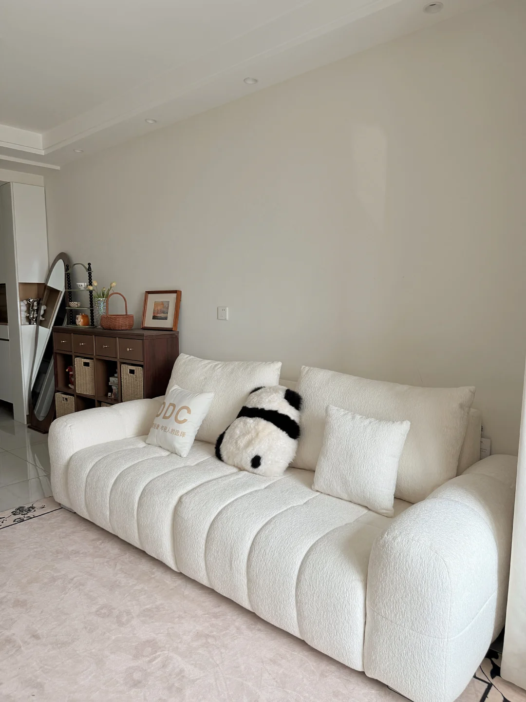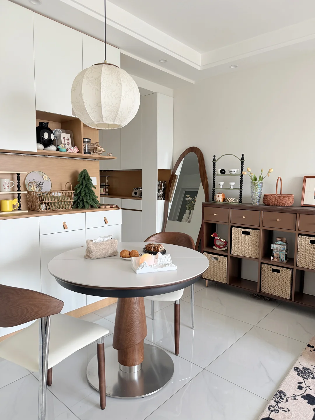 哈喽宝👋 这里是八月的67平小家(套内55平) 🦋 ⚪️🟤🟡 不做木地板也可以奶油复古风啦 客厅乳胶漆是杏子灰 暖暖的颜色让家里温馨十足 ✨关于尺寸 客厅开间:3米 |深度:6米 餐厅尺寸:1.8m×1.5m 小卧室:5平方 🪵 小小房间总是给予我大大的能量 住在自己设计的小家 真的太幸福啦[彩虹R][彩虹R]