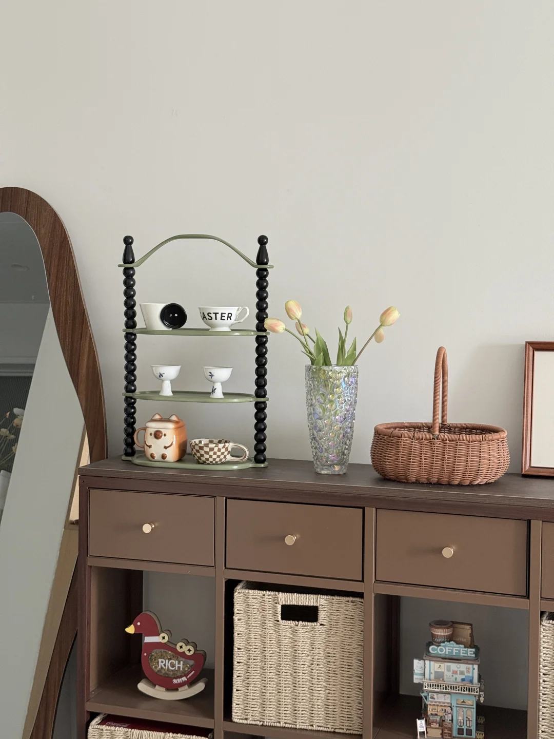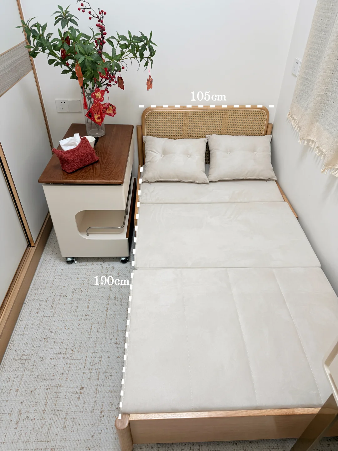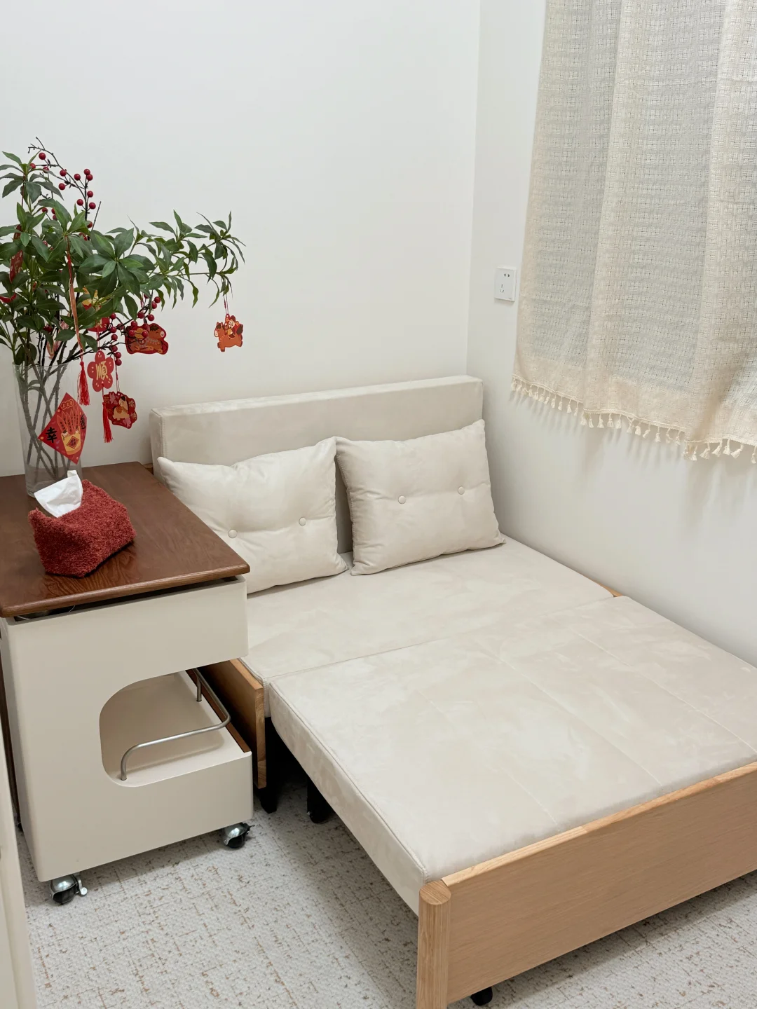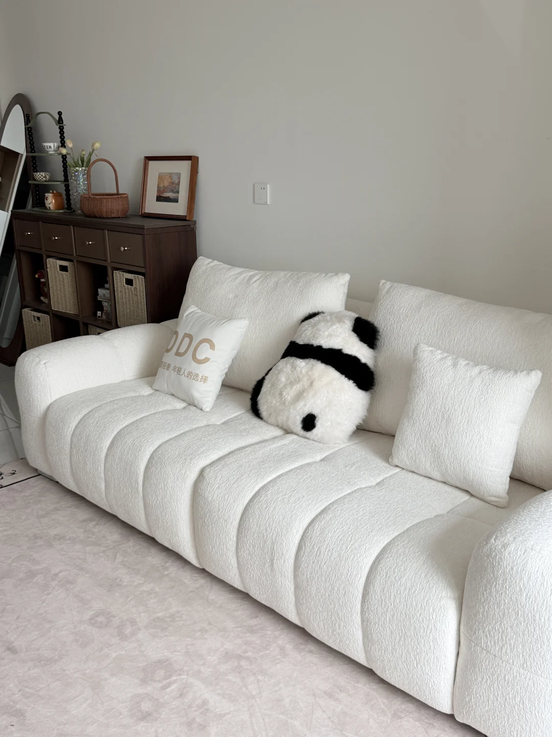 哈喽宝👋 这里是八月的67平小家(套内55平) 🦋 ⚪️🟤🟡 不做木地板也可以奶油复古风啦 客厅乳胶漆是杏子灰 暖暖的颜色让家里温馨十足 ✨关于尺寸 客厅开间:3米 |深度:6米 餐厅尺寸:1.8m×1.5m 小卧室:5平方 🪵 小小房间总是给予我大大的能量 住在自己设计的小家 真的太幸福啦[彩虹R][彩虹R]