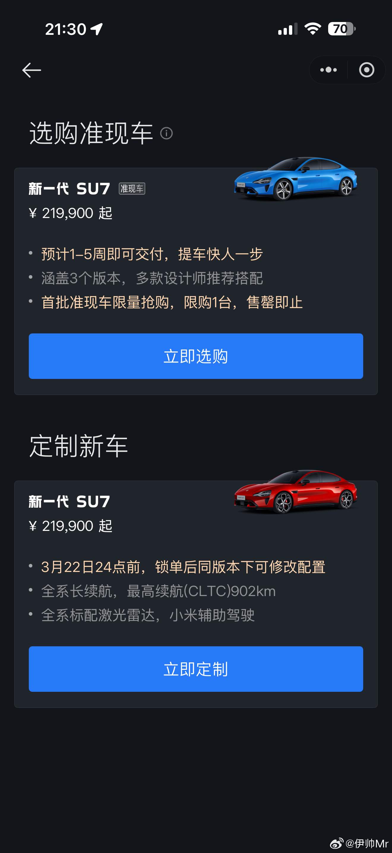 新一代SU7上市,产品升级价格可以,可选准现车减少等待时间新一代SU7小米新一代