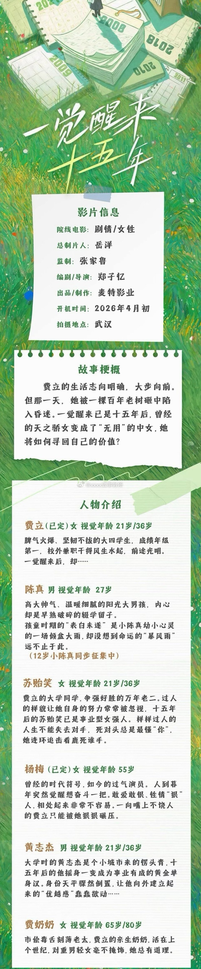 麦特影业🎬《一觉醒来十五年》阵容 :文淇、周柯宇、倪虹洁、孙怡、赵淑珍
