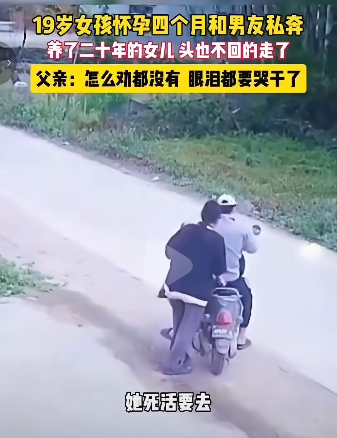 19岁女孩怀4个月身孕私奔,父亲哭到眼干:养了20年的女儿,头也不回坐上男友摩托