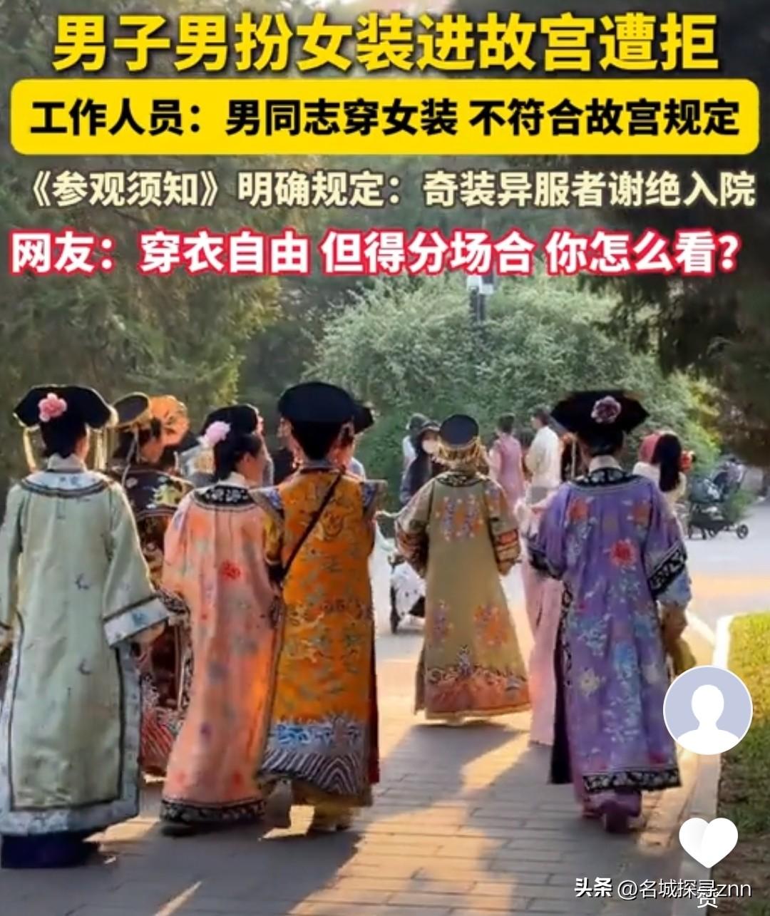 网友吵翻了:北京故宫,一男子穿女装在故宫午门检票处被工作人员拦下不让进,工作人员明确告知:"男同志穿女装不符合故宫参观规定!"男子对此提出质疑,强调自己已购买门票,认为购票后便享有入园参观的权益,工作人员的阻拦行为不合理! 男子站在检票口前,情绪逐渐激动,他掏出手机里的购票记录,反复强调自己提前三天预约、足额支付了门票费用,认为花钱就该获得对应的服务,工作人员的阻拦是在侵犯他的消费权益。 工作人员没有被他的情绪带偏,只是指着身后张贴的《故宫博物院参观须知》,语气平稳却坚定地重复着规定内容,同时告知男子,只要他换回符合要求的服装,就能正常入园参观,并非完全剥夺他的参观权利。 周围的游客渐渐围拢过来,有人拿出手机拍摄,也有老人轻声议论,觉得这样的装扮确实和故宫的庄重氛围格格不入。 男子听不进工作人员的解释,依旧不依不饶,声音越来越大,试图用音量压过工作人员的解释,甚至指责工作人员是在搞性别歧视,故意针对他。他反复强调,着装是个人自由,自己既没有裸露身体,也没有做出不雅行为,凭什么不能进入公共文化场所。 工作人员耐着性子再次解释,故宫的《参观须知》里明确写着,酗酒、衣容不整、奇装异服者谢绝入院,这条规定不是针对某个人,而是面向所有游客的公共规则。 男性着女装的装扮,在现场判断中属于可能影响公共秩序、有损文化场所庄重性的“奇装异服”,因此有权劝阻其入内。工作人员还补充,之前也有游客因过度夸张的装扮被劝阻,并非只针对他这一种情况。 事件很快在网络上发酵,网友们分成了截然不同的两派。 一部分网友坚定支持故宫的做法,认为故宫是承载着数百年历史的文化地标,不是普通的商业街区或网红打卡点,需要保持庄重肃穆的氛围,奇装异服会破坏这种沉淀已久的文化质感,尊重场所特性是每个游客最基本的文明素养。 他们觉得,购票只是获得参观的资格,并不意味着可以无视场所的规则和文化属性,真正的自由从来都不是无边界的。 另一部分网友则站在男子的角度,认为着装自由是个人的基本权利,只要不影响他人、不违反公序良俗,就不该被过度限制。 他们觉得,故宫的“奇装异服”定义过于模糊,男性穿女装本身并不涉及不雅或有害,工作人员的判断带有主观色彩,有过度干预个人选择的嫌疑,甚至有人直言,这是对性别多元表达的歧视。 还有网友提出更中立的看法,认为问题的核心不在于“男装女装”,而在于是否尊重文化场所的特殊性。 故宫作为世界文化遗产,它的存在意义是让人们感受历史的厚重与文化的庄严,过于张扬、刻意博眼球的装扮,确实会分散其他游客的注意力,也与场所的氛围相悖。 规则的存在,不是为了限制个性,而是为了守护公共文化空间的纯粹性,让更多人能在平和庄重的环境里感受历史。 随着讨论的深入,越来越多人开始意识到,这场冲突的本质,是个人自由与公共规则、个性表达与文化敬畏之间的碰撞。购票行为确实建立了消费关系,但文化场所的参观权益,从来都不是单纯的商业交易,它还包含着对文化的尊重与对公共秩序的维护。 故宫的规则不是为了刁难游客,而是为了守护这份不可复制的文化遗产,让每一位走进这里的人,都能在合适的氛围里触摸历史的温度。 男子最终没有接受工作人员换回服装的建议,带着不满离开了检票口。这场小小的冲突,却像一面镜子,照见了当代人在自由与规则、个性与传统之间的思考。它提醒着每一个人,当我们走进承载着厚重历史的文化场所时,除了享受参观的权利,更要扛起尊重文化、维护秩序的义务。 真正的文明,从来不是压抑个性,而是懂得在合适的场合做出合适的选择;真正的自由,也从来不是肆意妄为,而是在敬畏规则与他人的前提下,舒展自己的姿态。故宫的红墙黄瓦见证过数百年的风雨,它需要的不是博眼球的装扮,而是每一位游客发自内心的敬畏与守护。 各位读者你们怎么看?欢迎在评论区讨论。