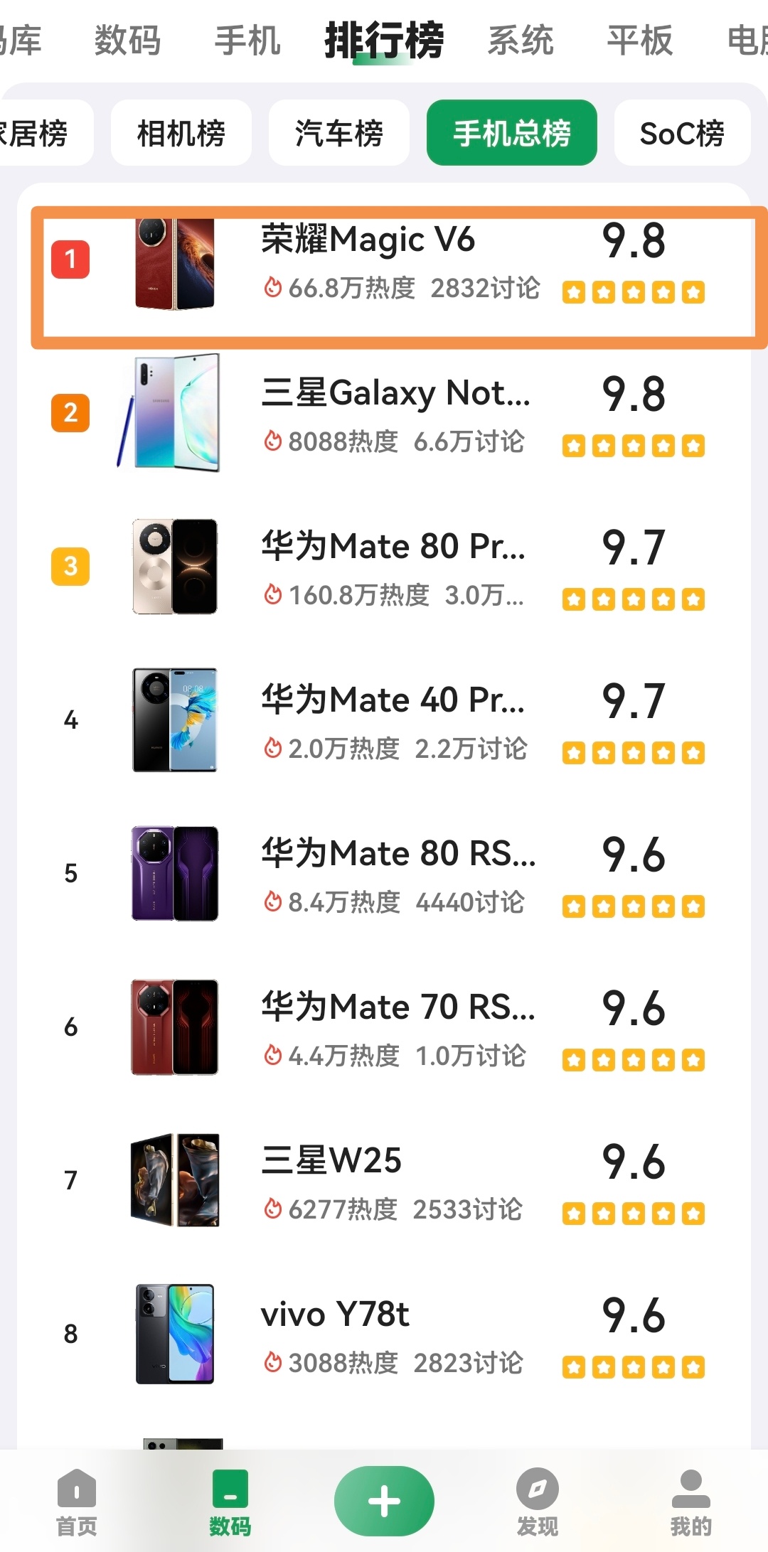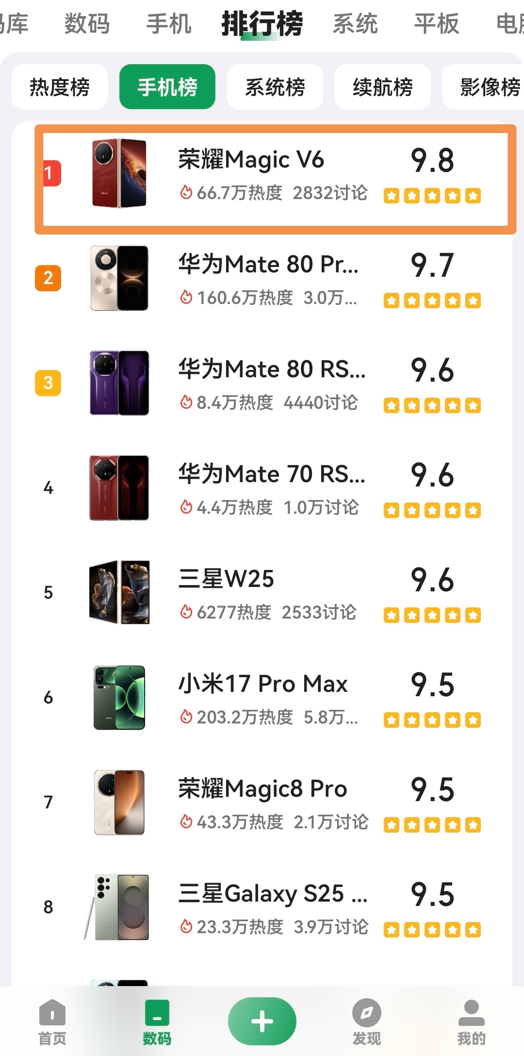 荣耀magic v6 这波真的把「全能」焊在机身上了酷安手机榜直接登顶9.8分,性能榜也是第一,屏幕榜也稳在前列,实力真的没话说!更绝的是续航和充电——三小时综合用下来还剩60%+电,极限续航能扛7个多小时,重度党狂喜!买手机还送120W氮化镓全能充,SCP/PD/QC全协议兼容,手机、笔记本、耳机啥都能充,体积还小,出门带这一个就够了,充啥都快到离谱!折叠屏里的六边形战士,这波诚意直接拉满了~