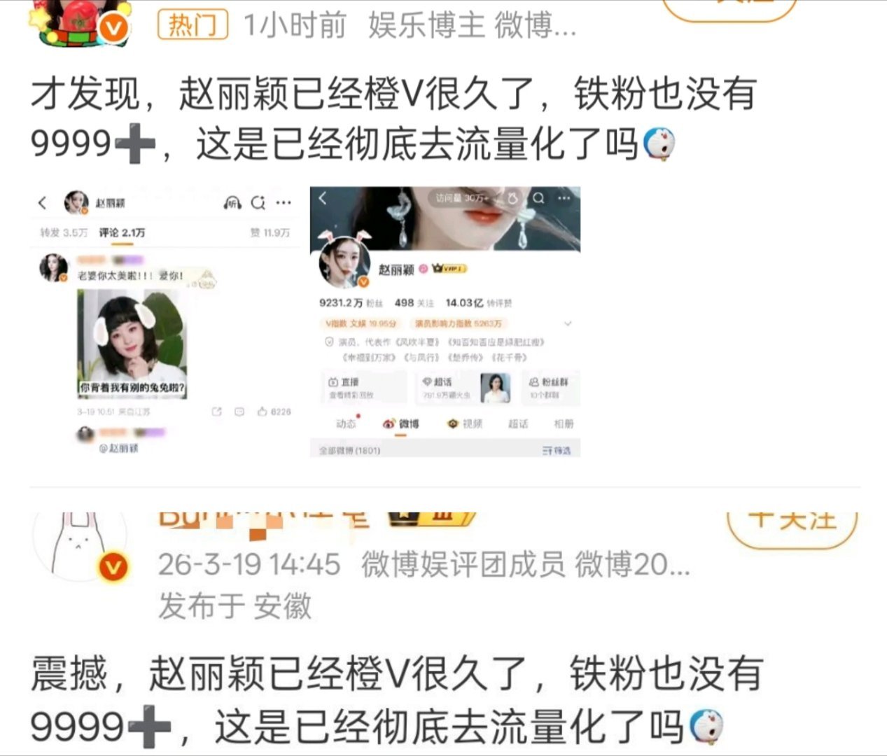 怎么都在发赵丽颖去流量通稿,人家工作室今天发的都铁粉9999+了,超话也钻超了