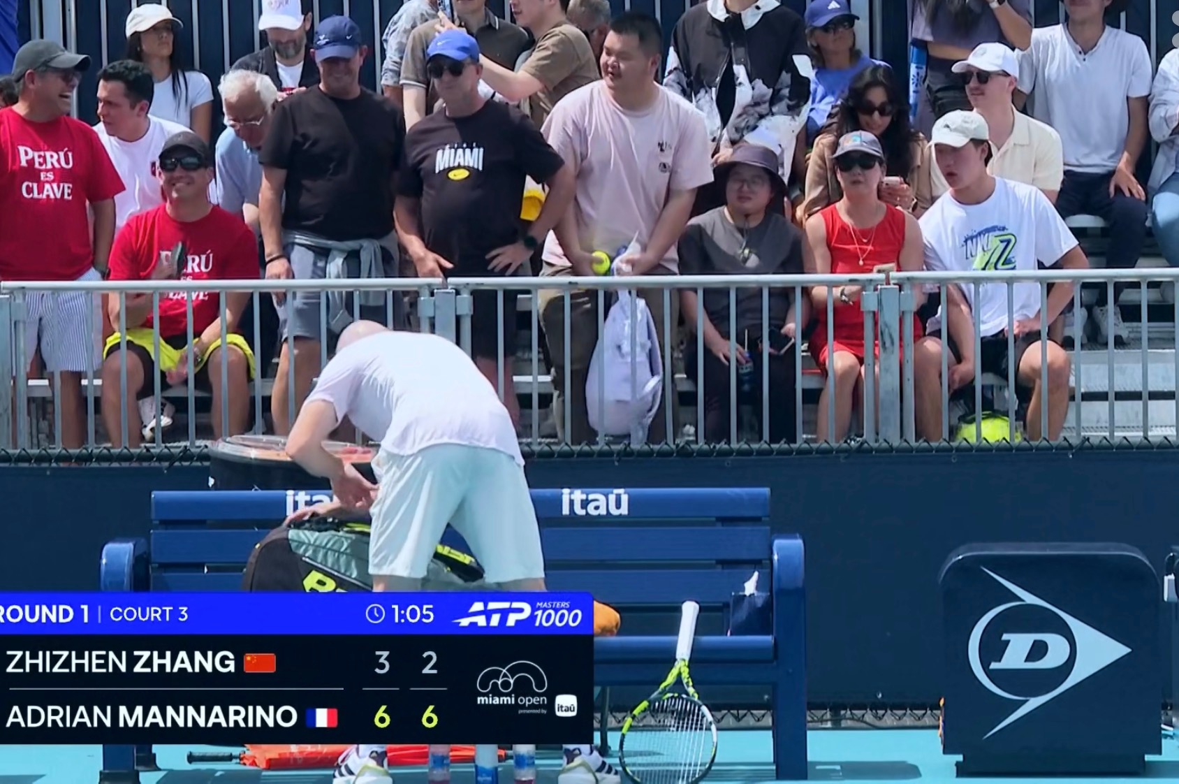 迈阿密1000赛 张之臻3-6/2-6不敌马纳里诺,止步首轮
