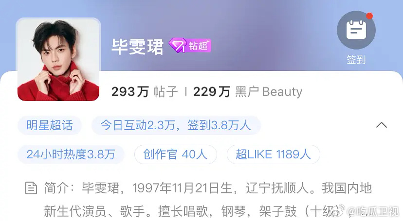 毕雯珺这个超话热度真的正常吗?钻超十点超like1000出头 发帖6k➕ 热度已