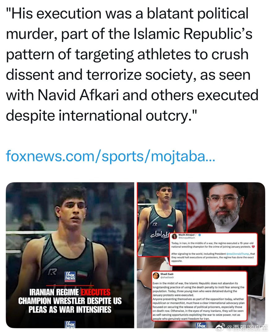 伊朗公开处决(绞刑)反对现政quan的摔跤运动员